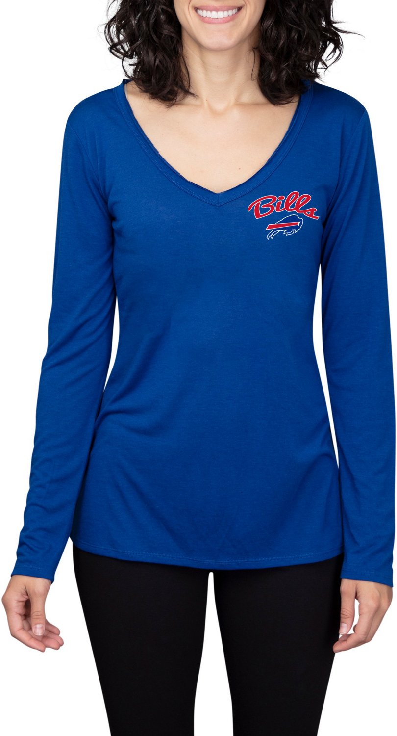 Put your Bills pride on display with the College Concept Women's Buffalo Bills Side Marathon Long Sleeve Top. The team graphic printed on the front delivers a sporty look on game day, and the polyester/rayon blend is soft to the touch. V-neck.