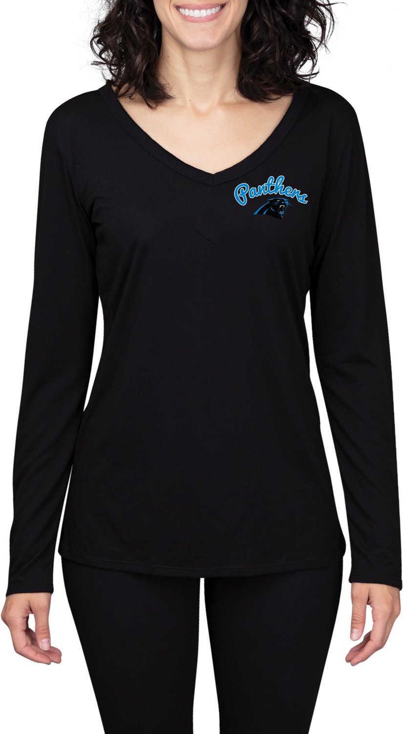 Cheer on your favorite team in the College Concept Women's Carolina Panthers Side Marathon Long Sleeve Top. Crafted with polyester and rayon jersey fabric, this top provides a comfortable feel all day long, while the screen-printed design on the chest shows off your love for the Panthers. Long sleeves. V-neck.