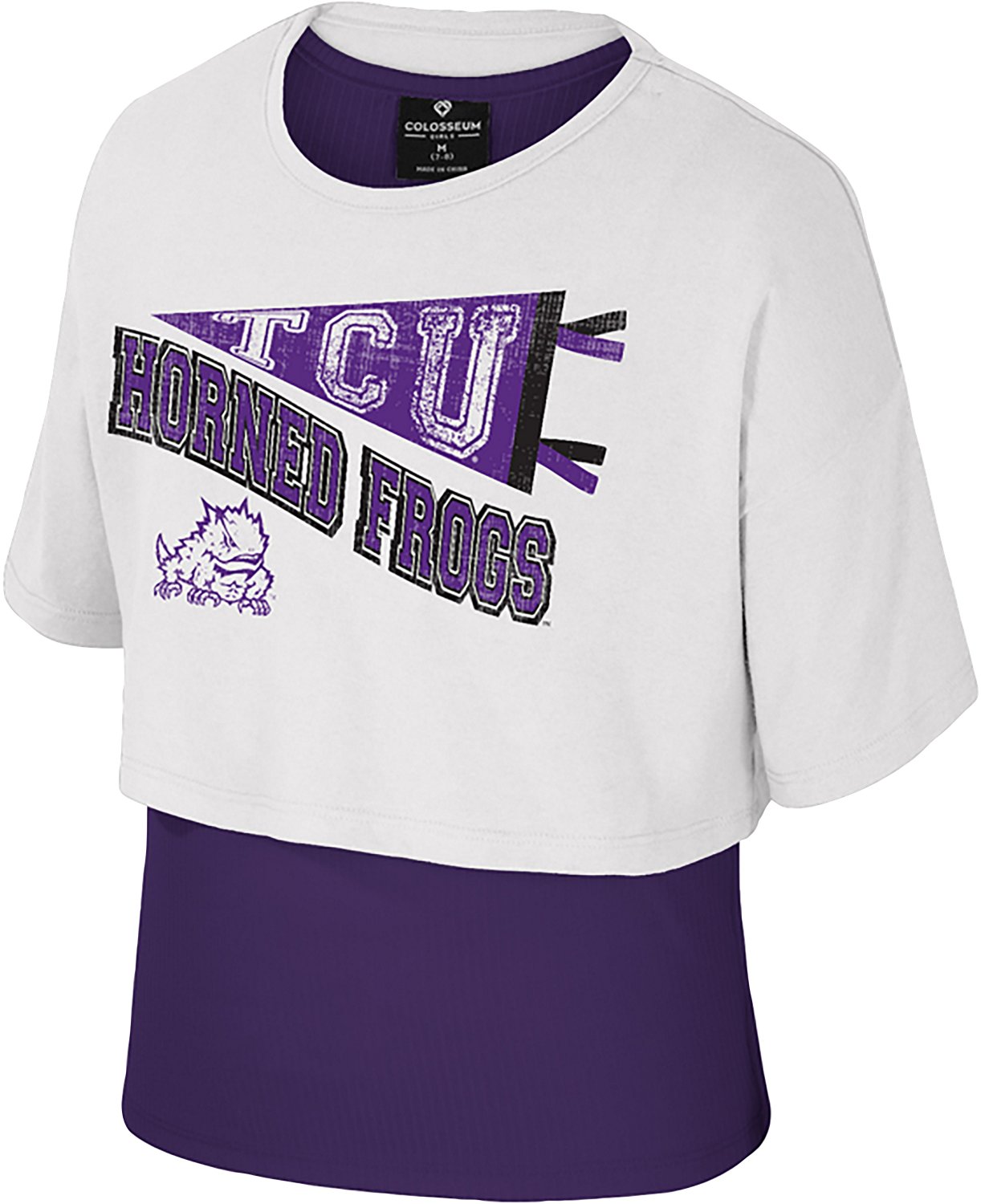 Colosseum Athletics Girls' Texas Christian University Riley 2Fer Graphic T-shirt