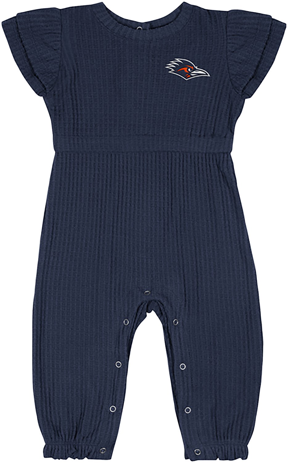 Little fans will feel snug and cozy in the Colosseum Athletics Infants' UTSA Beautopia Waffle Short Sleeve Romper, which offers ruffled sleeves and elastic leg openings. The romper is made of polyester, rayon and spandex to provide a soft feel and features a team logo embroidery on the left chest.