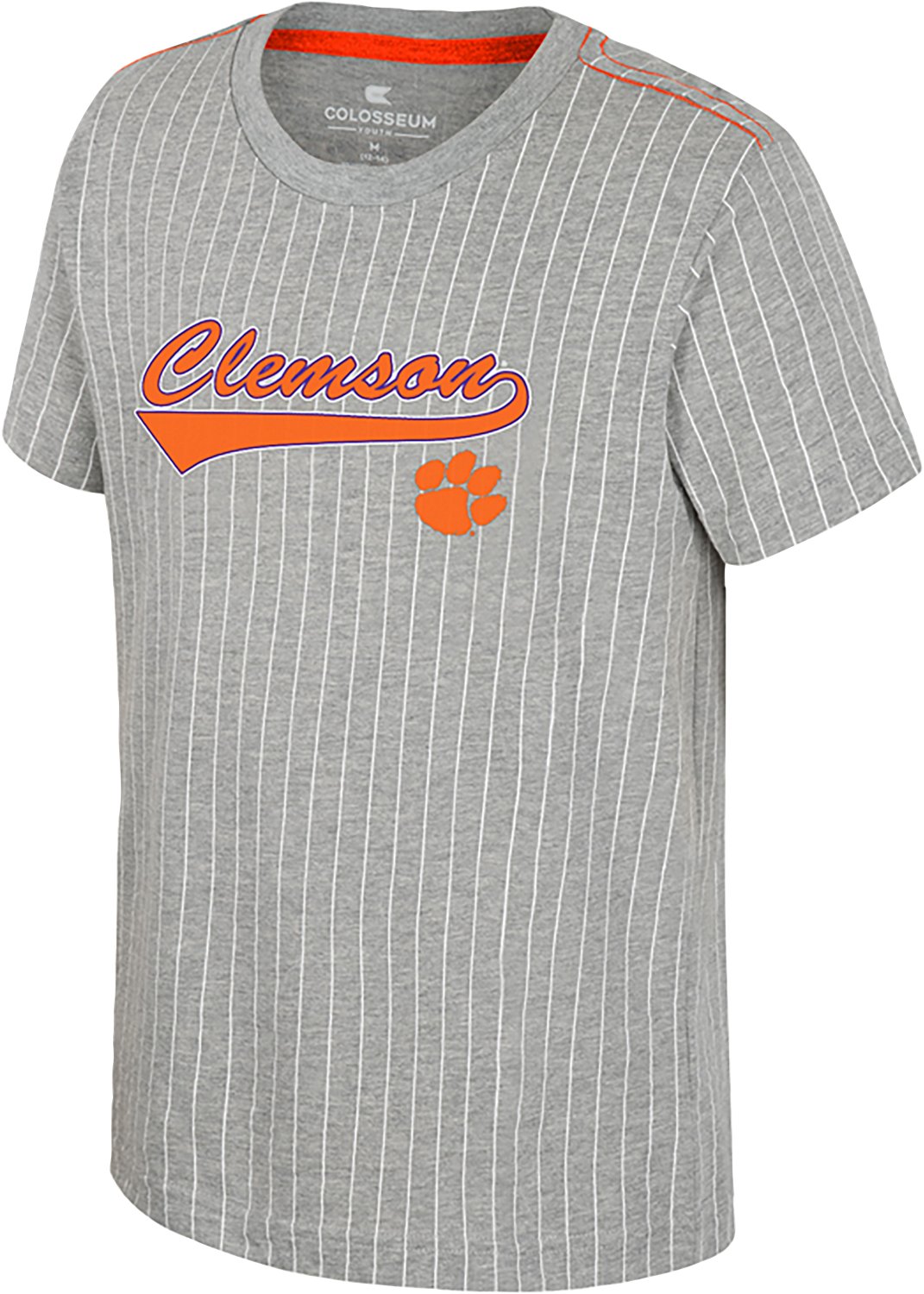 "Clemson" and the Clemson Tigers logo are screen printed on the front