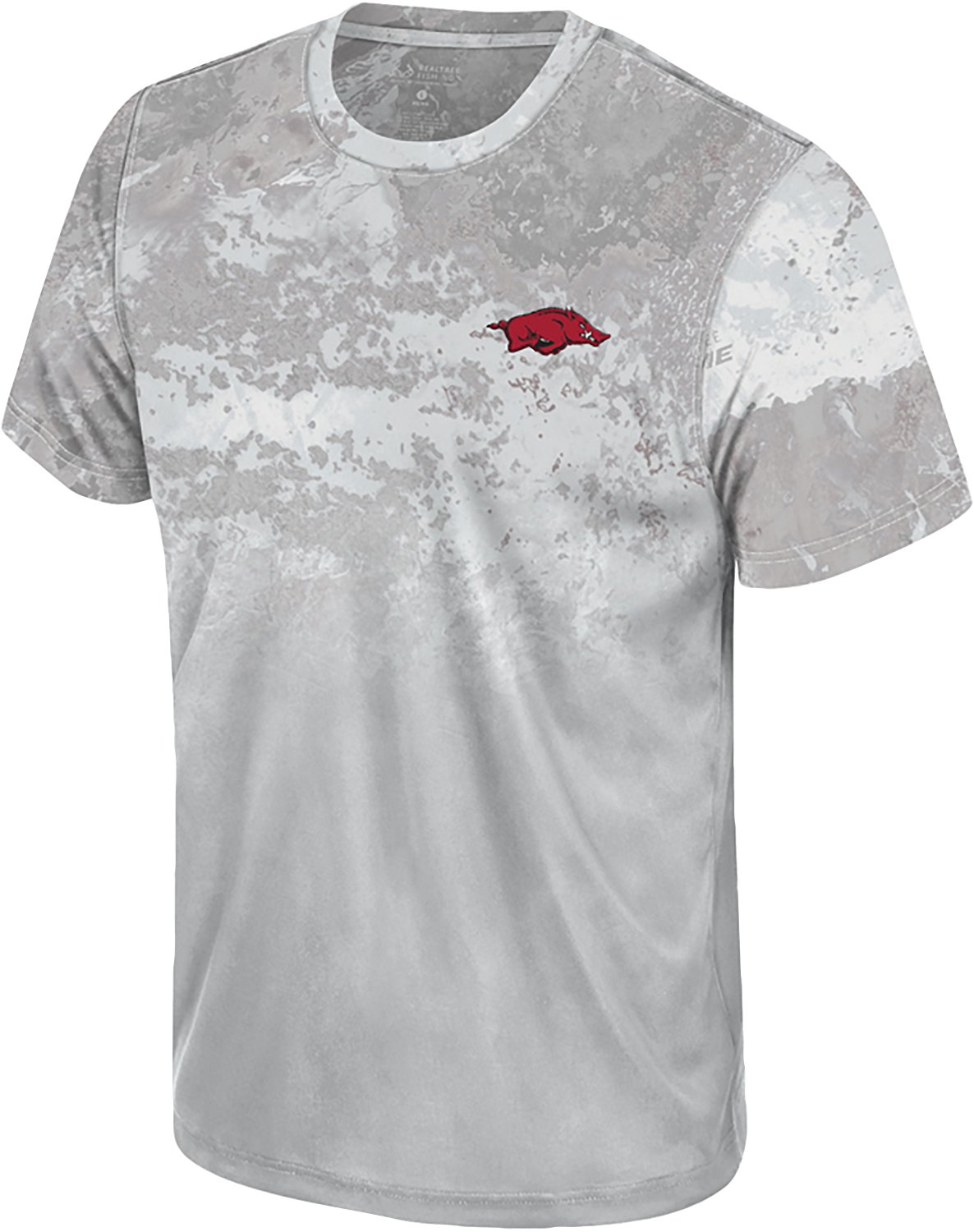 Show off your school spirit in the Colosseum Athletics Men's Arkansas Razorbacks Realtree Newport Performance Short Sleeve T-shirt. It is made of 100% polyester. The short sleeves keep you cool, and its crew neckline provides a casual looks. The raised rubberized Arkansas Razorbacks logo on the front finishes off the design.