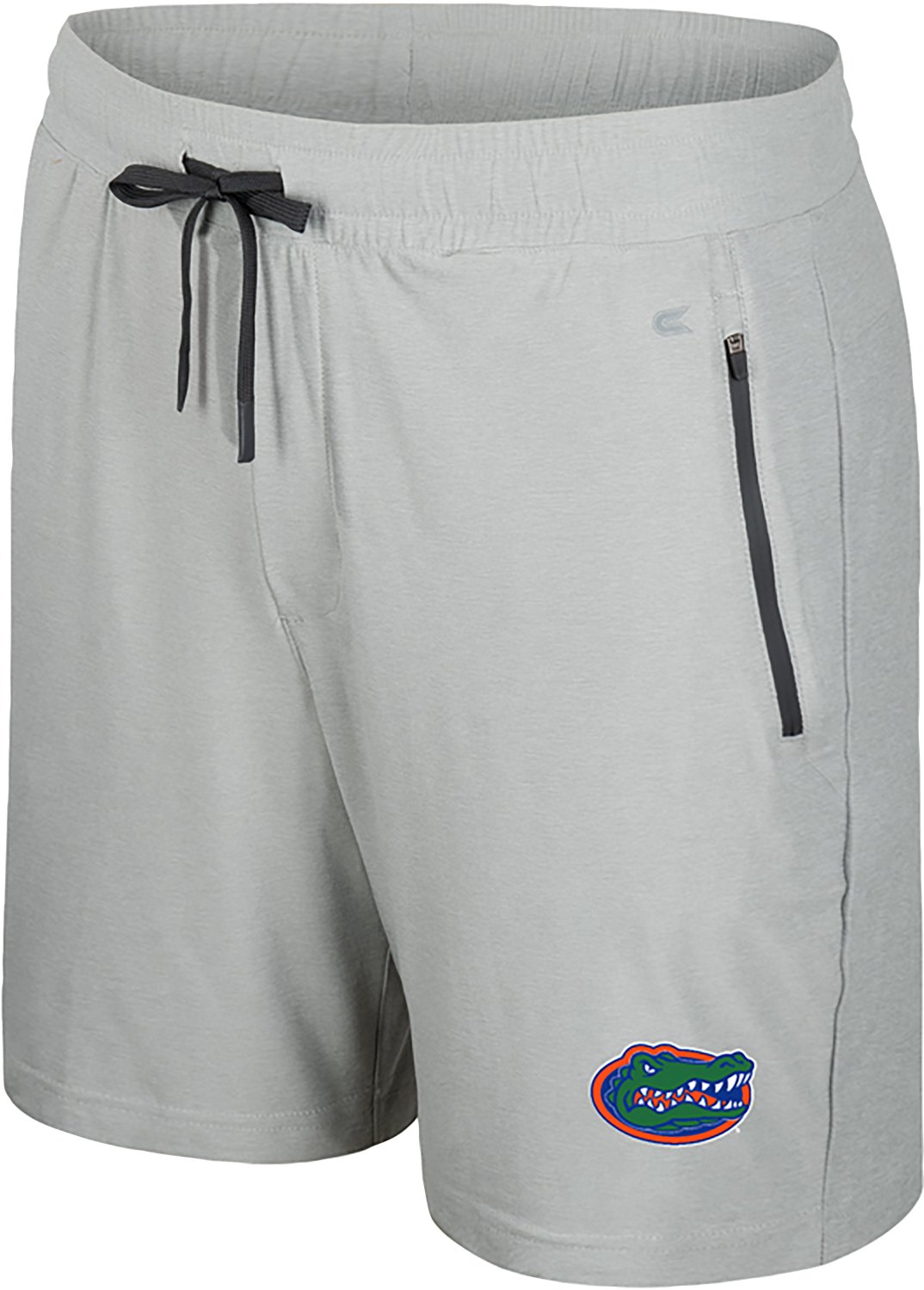 Show off your school spirit in the Colosseum Athletics Men's Florida Gators Atomic Shorts 7 in. They are made of 88% polyester and 12% spandex. The elastic waistband is equipped with adjustable drawcords, and their zipper side pockets allow you to store small items. The 7-inch inseam offers more coverage.