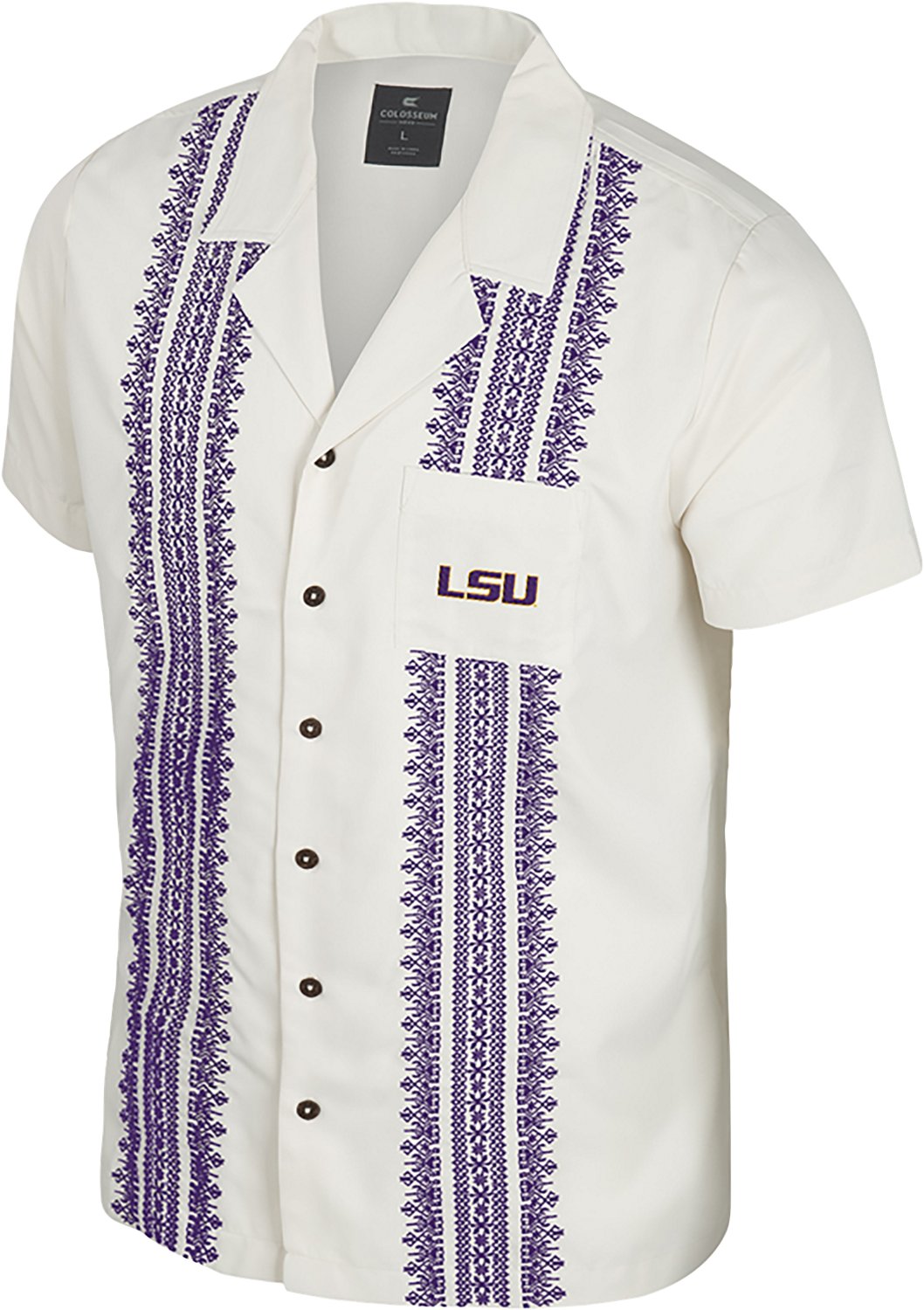 If you want to help cheer on your team with other fans, throw on the Colosseum Athletics Men's LSU Calculations Camp Shirt. This button-down shirt offers soft polyester construction and is designed with unique stripes down the sides of the front and a team logo on the chest to make sure you get noticed.