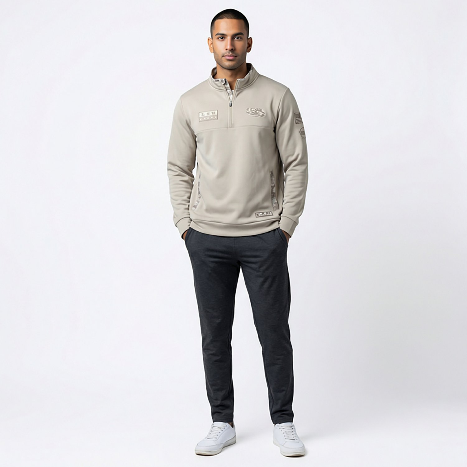 Root for your favorite team when you wear the Colosseum Athletics Men's LSU Tigers Battalion Fleece 1/4-Zip Sweatshirt. It is made of 100% polyester. The 1/4-zip creates an adjustable neckline, and its side welt pockets allow you to carry around small items. The LSU Tigers graphics on the front chest show off your team spirit.