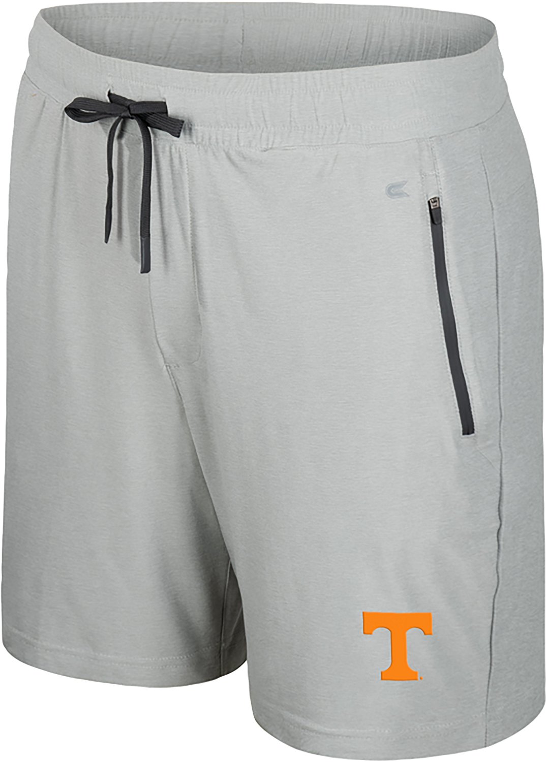 Root for your favorite team when you wear the Colosseum Athletics Men's Tennessee Volunteers Atomic Shorts 7 in. They are made of 88% polyester and 12% spandex. The elastic waistband is equipped with adjustable silicone dipped drawcords for a comfortable fit, and their zipper side pockets allow you to store small items. The rubberized print of the Tennessee Volunteers logo on the bottom left leg, showing off your school spirit.