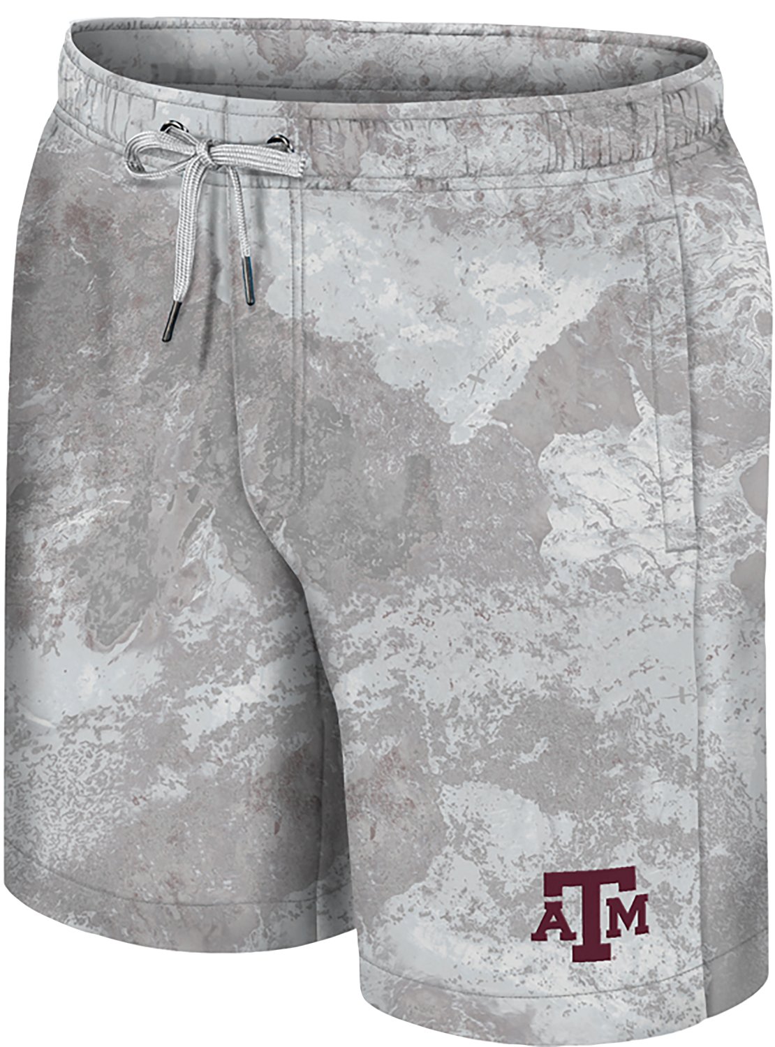 Show off your school spirit in the Colosseum Athletics Men's Texas A&M Aggies Realtree Delray Amphibious Shorts 7 in. They are made of 90% polyester and 10% spandex. The open front and back pockets allow you to store small items, and their faux fly provides the style of a zippered closure. The 7-inch inseam reaches your knees for moderate coverage.