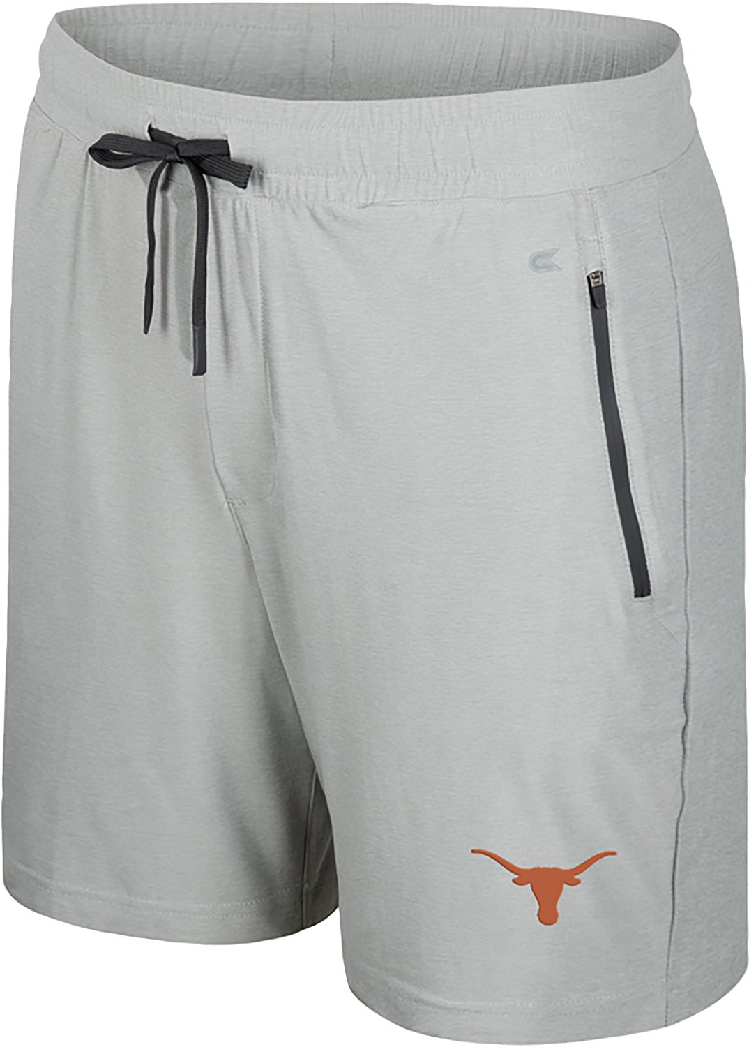 Show off your school spirit in the Colosseum Athletics Men's Texas Longhorns Atomic Shorts 7 in. They are made of 88% polyester and 12% spandex. The elastic waistband is equipped with adjustable drawcords, and their zipper side pockets allow you to store small items. The 7-inch inseam offers more coverage.