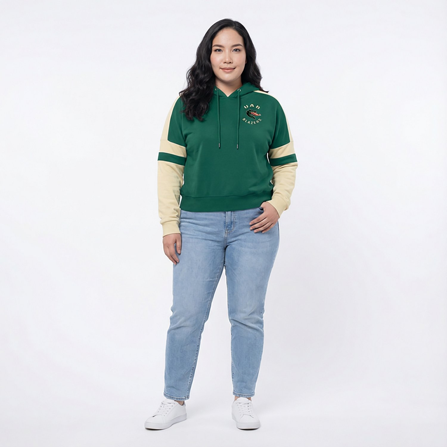 If you want to showcase your team pride during the next game, throw on the Colosseum Athletics Women's Alabama-Birmingham Harry Cropped Hoodie. This hoodie is made of cotton and polyester fleece for comfort and warmth and features a team embroidery on the left chest to help other fans celebrate with you.
