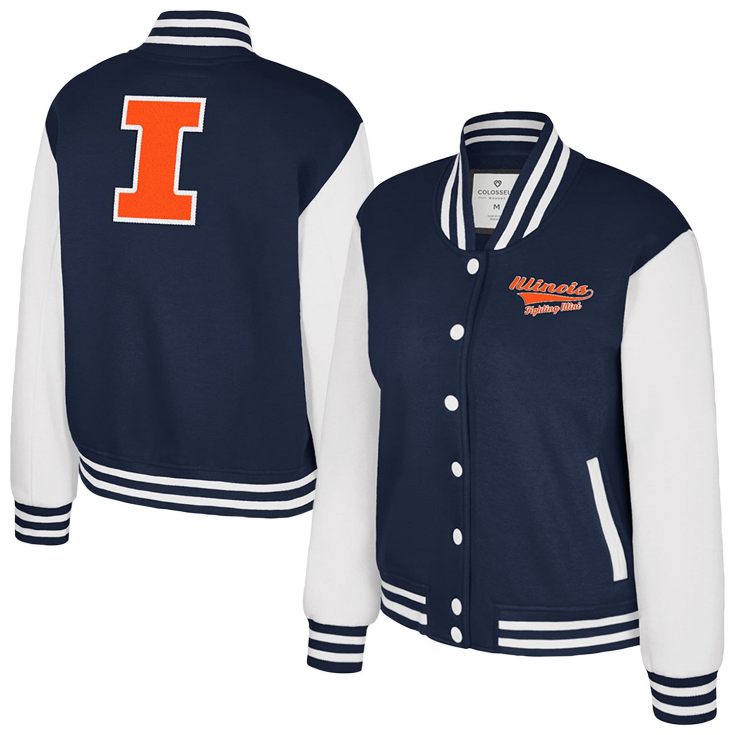 Add some retro flair to your Illinois Fighting Illini fan wardrobe with this French Baguette Full Snap Fleece Jacket from Colosseum This jacket is made with heavyweight fleece to help you stay warm when the temperatures fall Plus the embroidered team name on the front and chenille and felt appliqu logo on the back make it clear you're cheering for the Illinois Fighting Illini