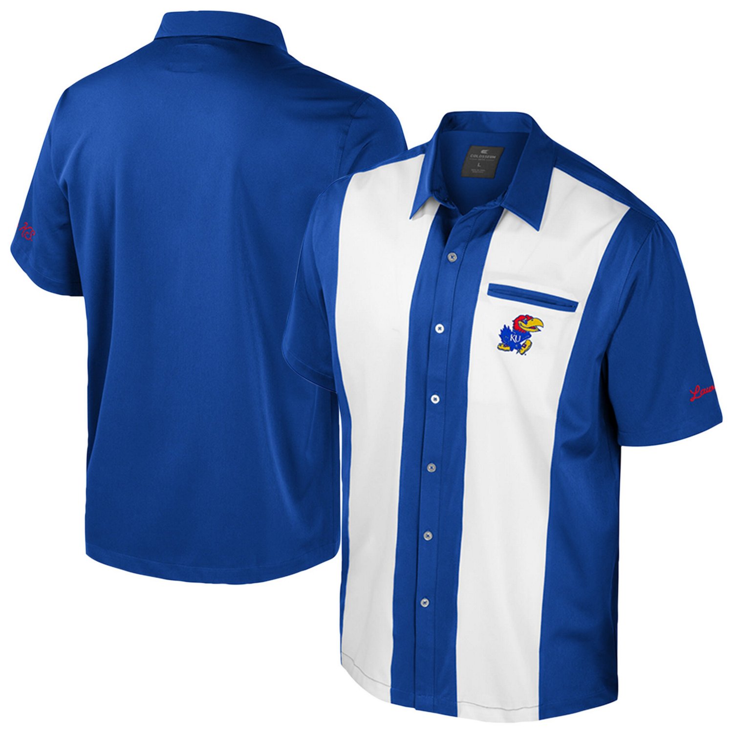 Hit the lanes in style and rep your Kansas Jayhawks with the Colosseum Strike Bowling Button-Up Shirt This button-up shirt crafted from a blend of polyester and spandex offers a comfortable and flexible fit that's perfect for a day on the lanes or cheering on the Kansas Jayhawks Its striking color-block stripe design is sure to turn heads while the embroidered team logo and city/state details add a touch of understated fandom
