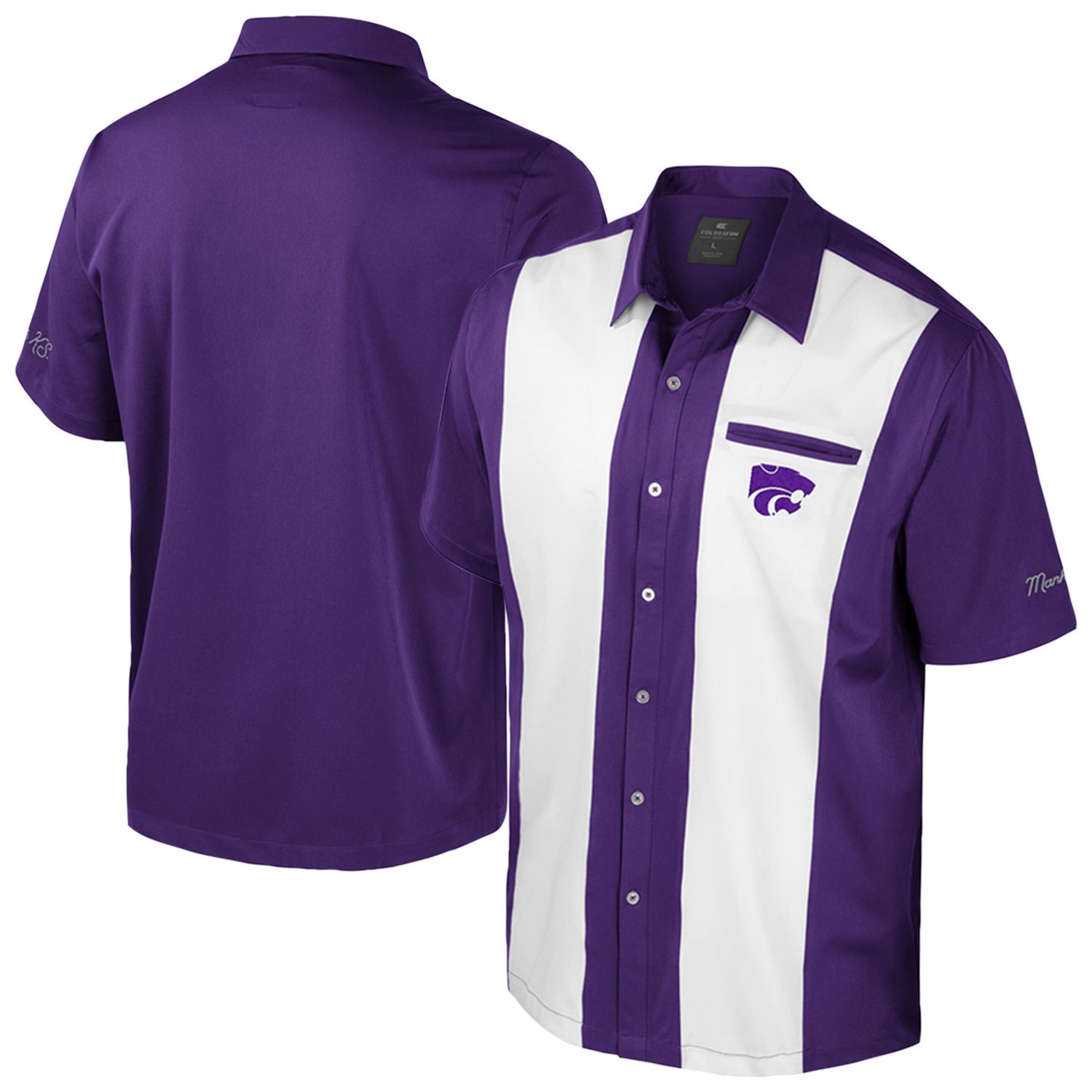 Hit the lanes in style and rep your Kansas State Wildcats with the Colosseum Strike Bowling Button-Up Shirt This button-up shirt crafted from a blend of polyester and spandex offers a comfortable and flexible fit that's perfect for a day on the lanes or cheering on the Kansas State Wildcats Its striking color-block stripe design is sure to turn heads while the embroidered team logo and city/state details add a touch of understated fandom