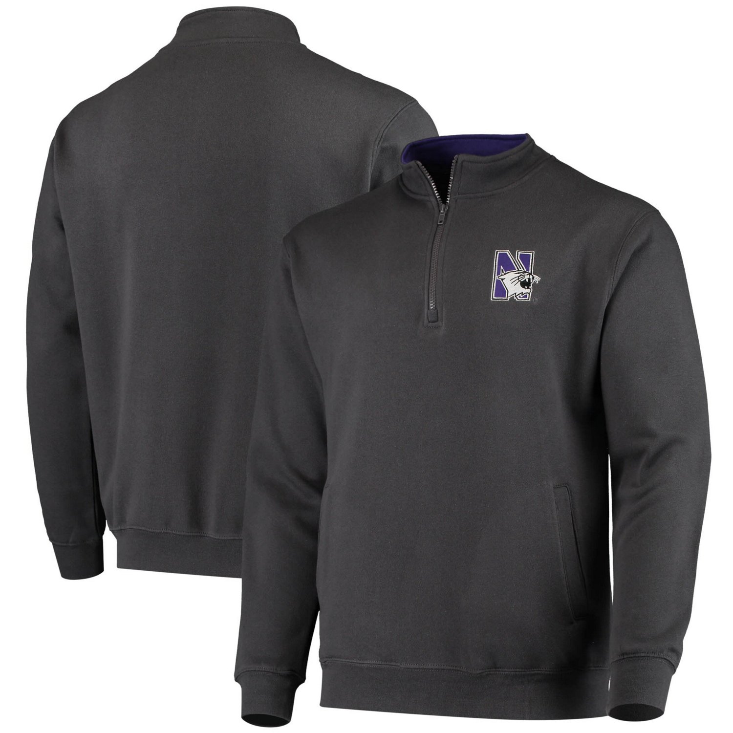 The Men's Colosseum Charcoal Northwestern Wildcats Tortugas Logo Quarter-Zip Jacket is the perfect way to show your support for the Northwestern Wildcats This midweight jacket is made of a soft cotton and polyester blend featuring an embroidered Tortugas logo on the chest The Olympic collar rib-knit cuffs and waistband and two front pockets enhance comfort and style Whether cheering at the game or showcasing team spirit this jacket ensures warmth and comfort
