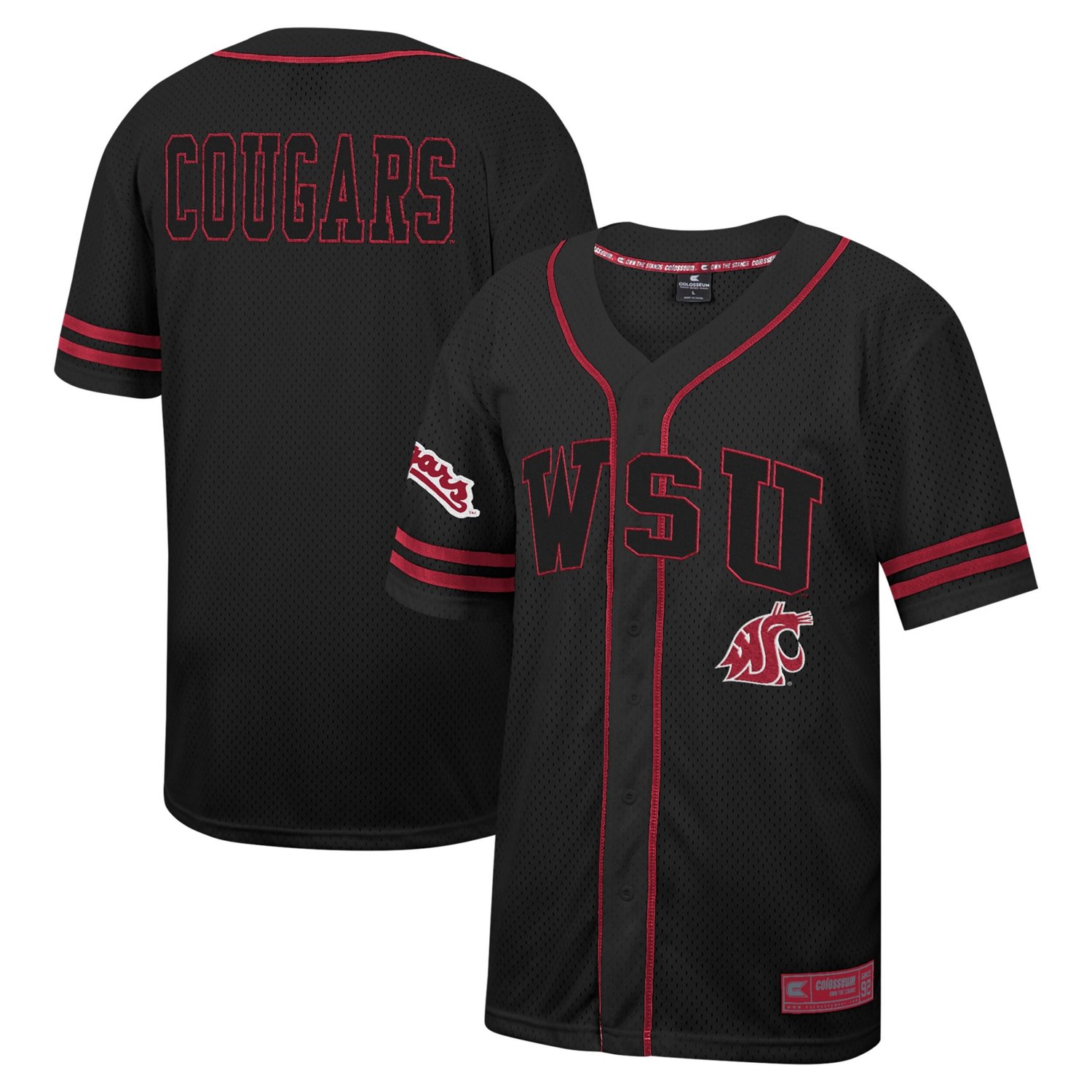 As a Free Spirited Washington State Cougars fan this Colosseum button-up Baseball jersey is the perfect way to convey your loyalty It features a lightweight design thanks to its breathable mesh fabric On top of that the sewn-on stripes add flair to the classic Washington State Cougars design