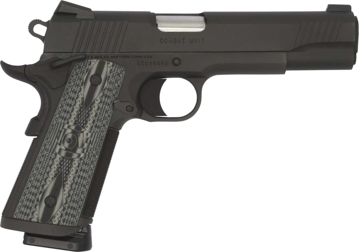 Improve your control with the Colt Government Combat Unit .45 ACP Pistol. The stainless steel frame with a PVD slide and match barrel ensure precision shooting, while the front and angled slide serrations and extended magwell allow for quick reloads. The Novak front and rear sights offer increased accuracy, and the undercut trigger guard and beavertail safety provide improved recoil control.
