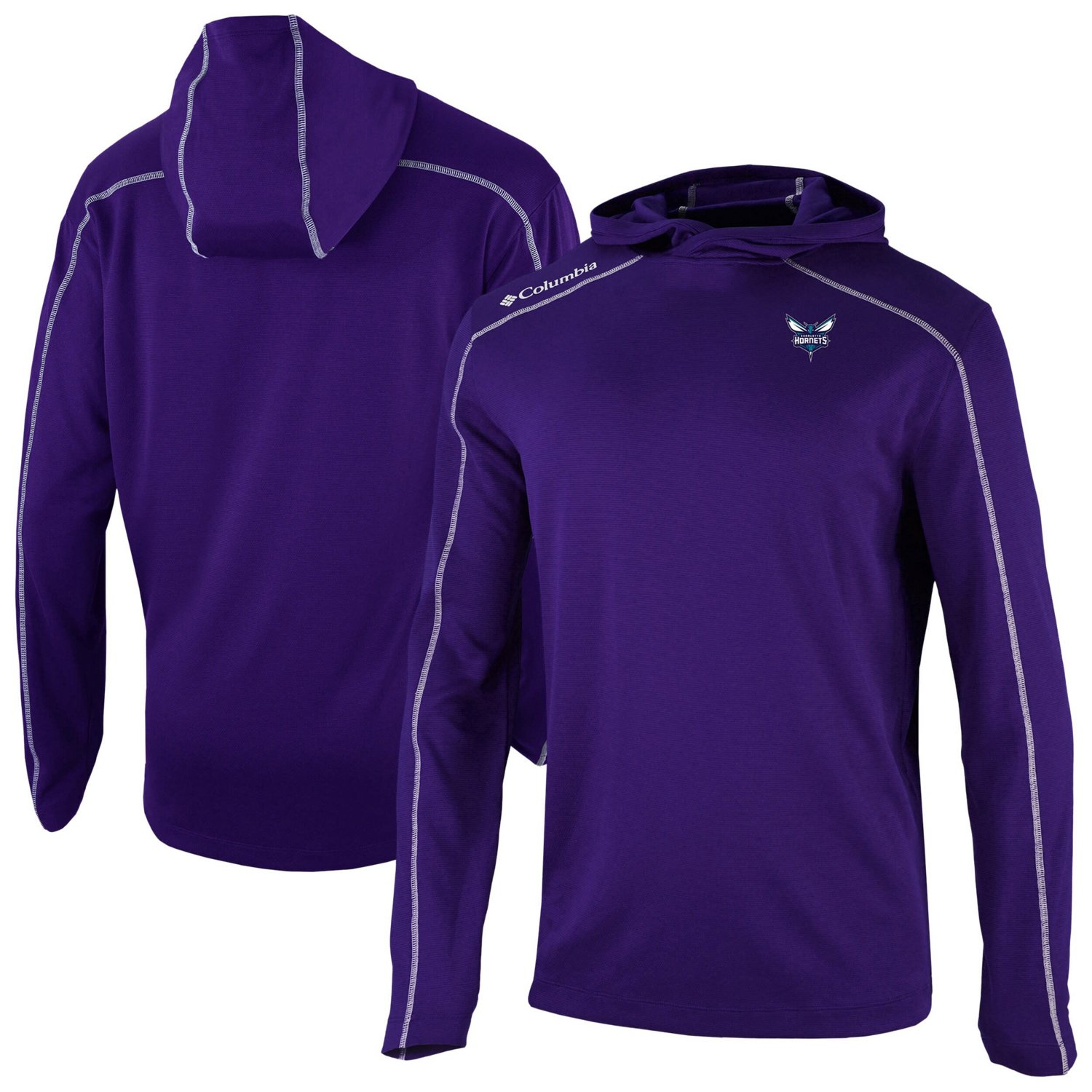Stay warm while repping the Charlotte Hornets with this Columbia Omni-Wick Shotgun Pullover Hoodie This lightweight pullover is perfect for mild temperatures and features Omni-Wick technology ensuring you stay comfortable and dry throughout the day The screen-printed team logo on the left chest and contrast stitching on the sleeves and hood paneling let you rep the Charlotte Hornets with style