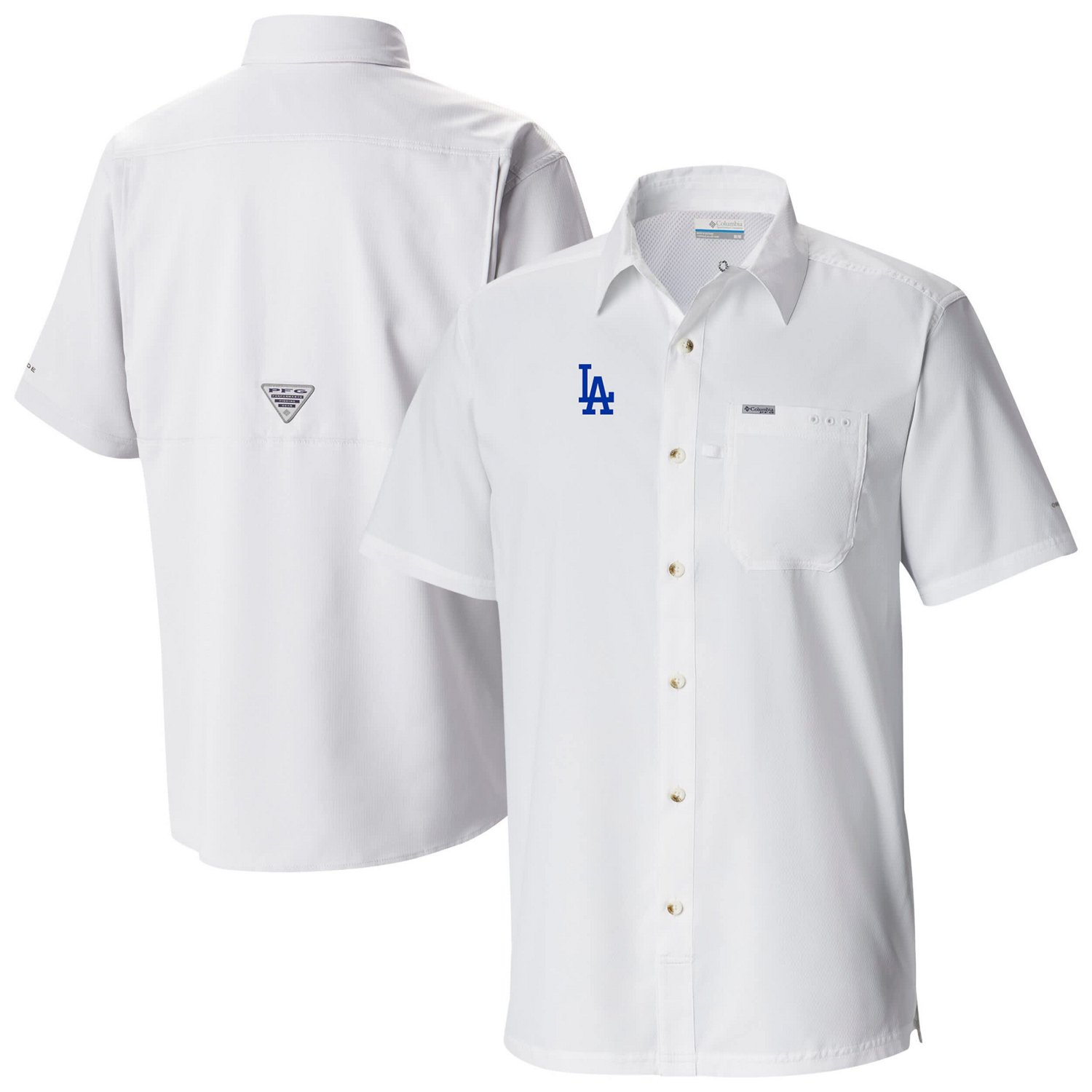 Enjoy breezy comfort while repping your Los Angeles Dodgers with this Columbia Slack Tide Omni-Wick Button-Up Camp Shirt This button-up camp shirt is crafted with Columbia's signature Omni-Wick technology ensuring you stay cool and dry even during the most intense moments of the game Plus the Omni-Shade technology provides UPF 50 sun protection so you can comfortably sport your Los Angeles Dodgers pride all day long
