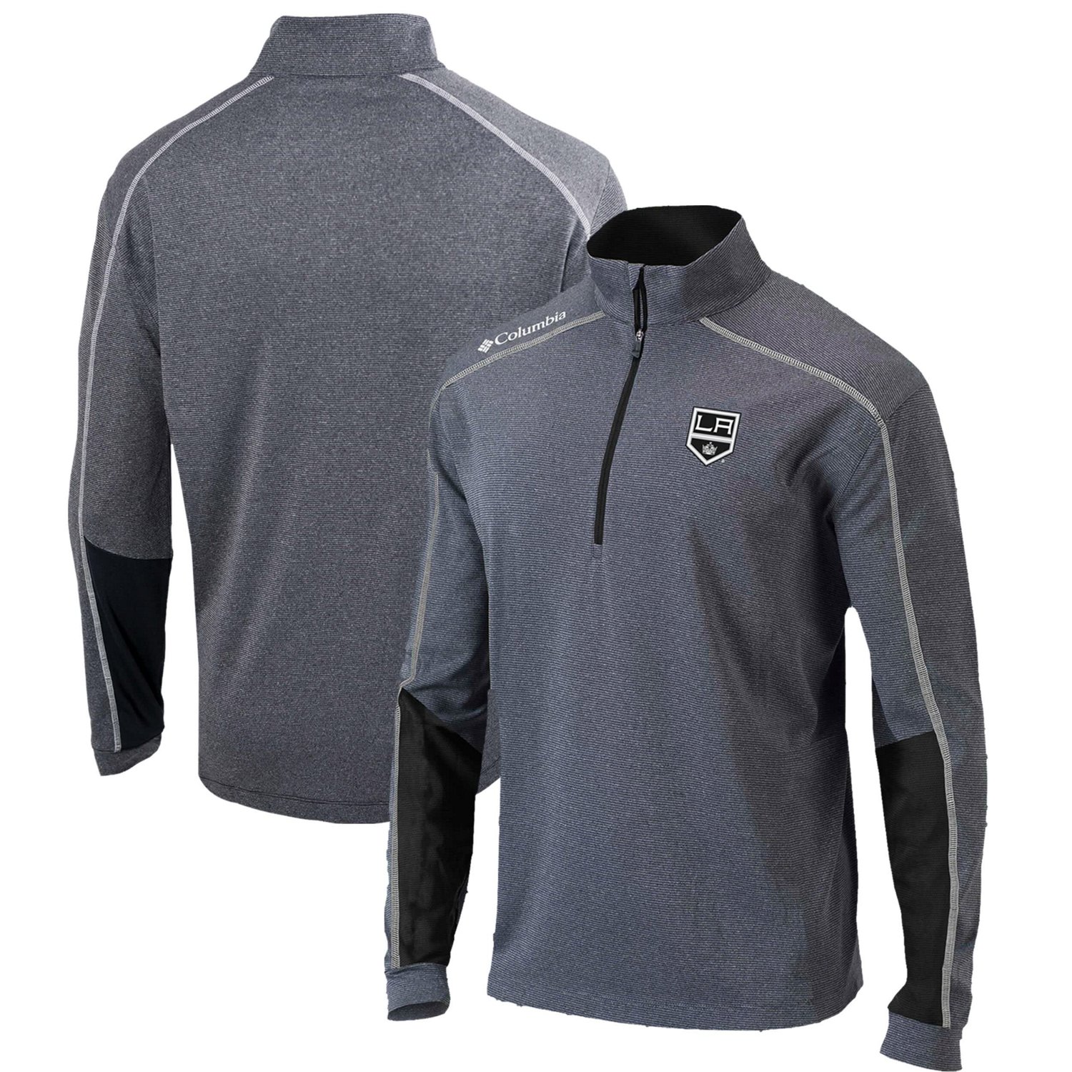 The Men's Columbia Gray/Black Los Angeles Kings Omni-Wick Shotgun 20 Quarter-Zip Pullover Top is the perfect way to show your support for the Los Angeles Kings Made of lightweight polyester this top is perfect for mild temperatures and features heat-sealed graphics that will keep you looking your best The quarter-zip closure and vertical zippered sleeve pocket make it easy to get on and off while the flatlock stitching ensures durability Whether you're cheering on the Kings at the game or just showing your support around town this top is a must-have for any fan