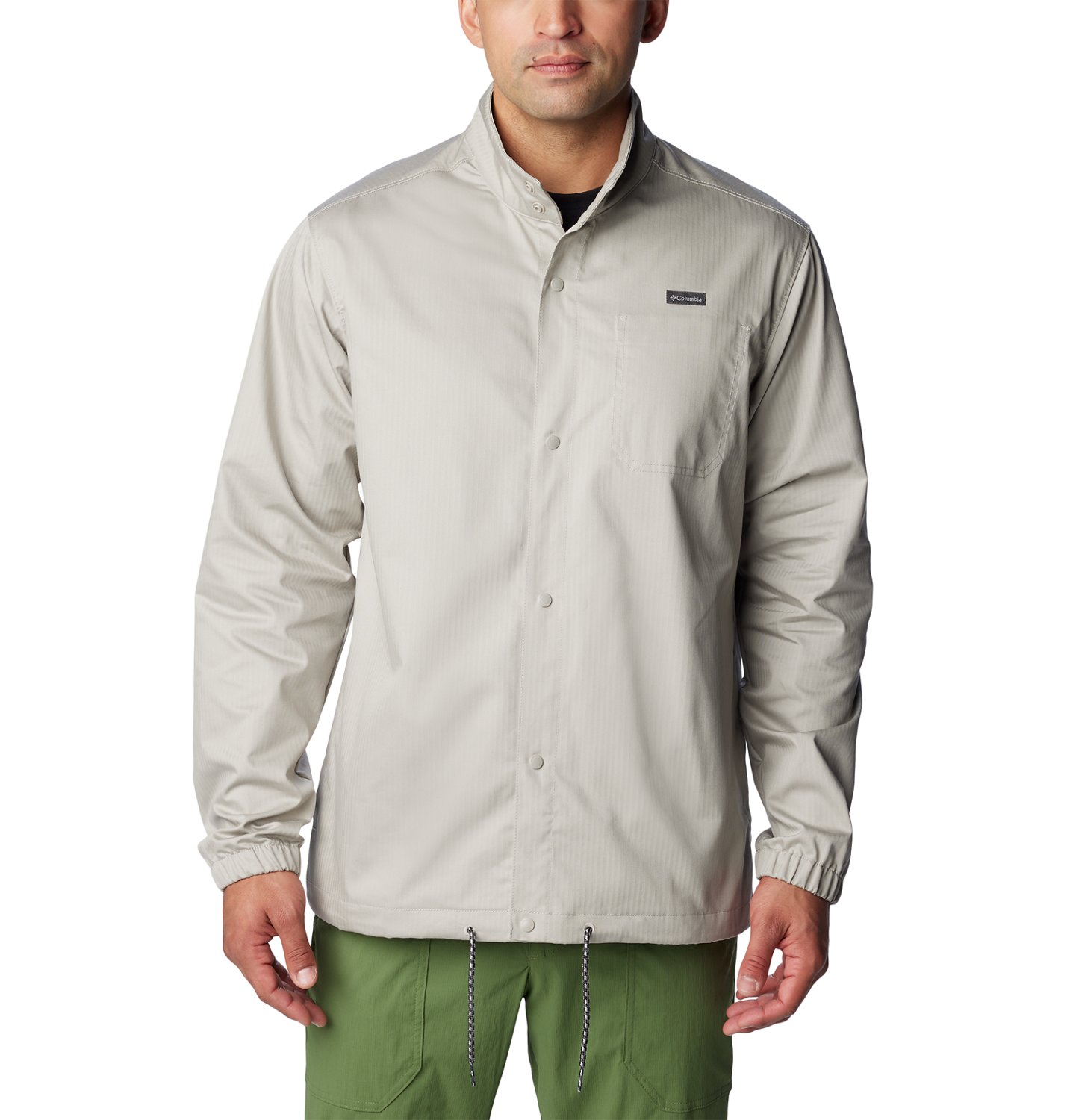 Layer in style with the Columbia Sportswear Men's Pitchstone Shirt Jacket. The cotton and polyester fabric offers comfort and durability, while the drawstring hem ensures the perfect fit.