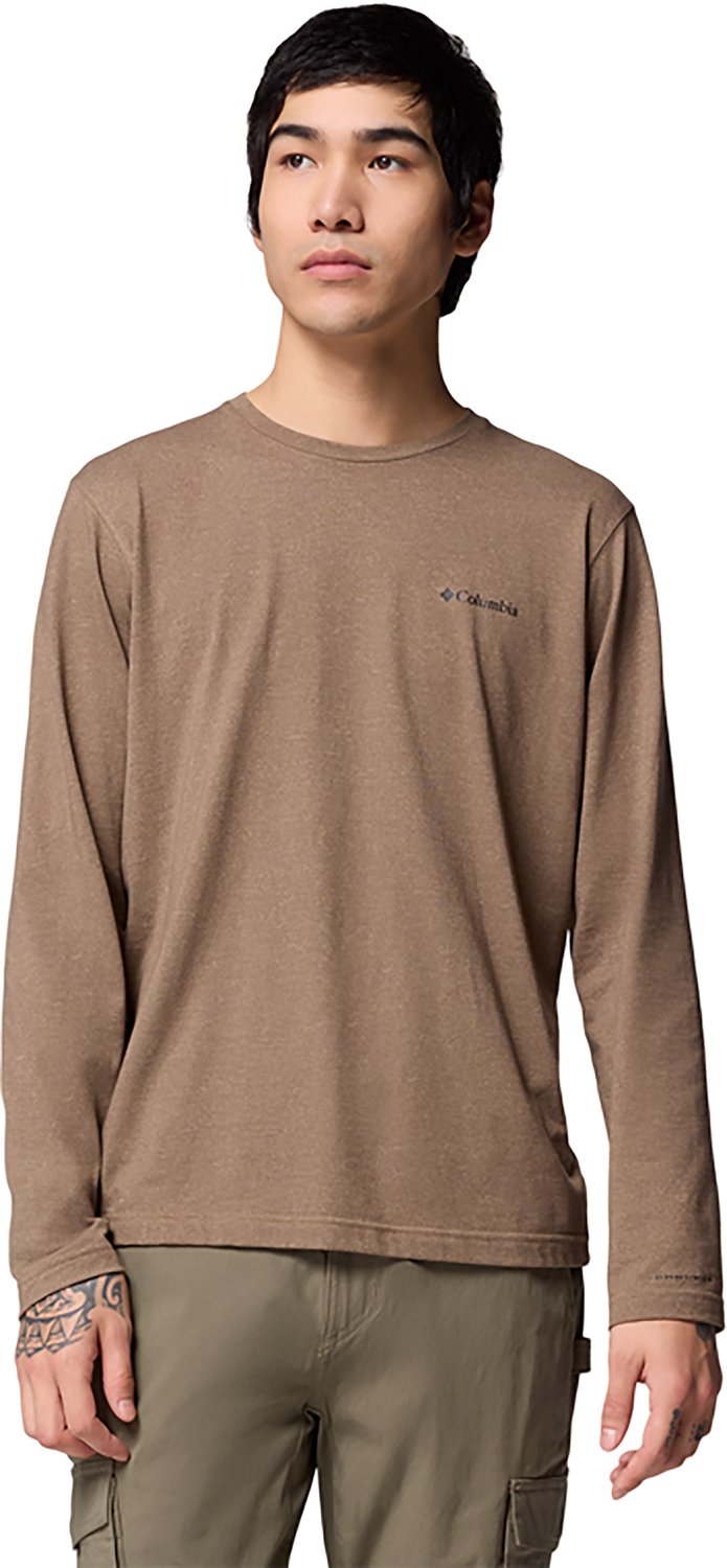 Enjoy your day in style with the Columbia Sportswear Men's Thistletown Hills Graphic Long Sleeve T-shirt. The cotton and polyester construction provides comfort that lasts the whole day, while the graphic design creates a stylish appearance. The OMNIWICK technology prevents accumulation of sweat and moisture to keep you dry.