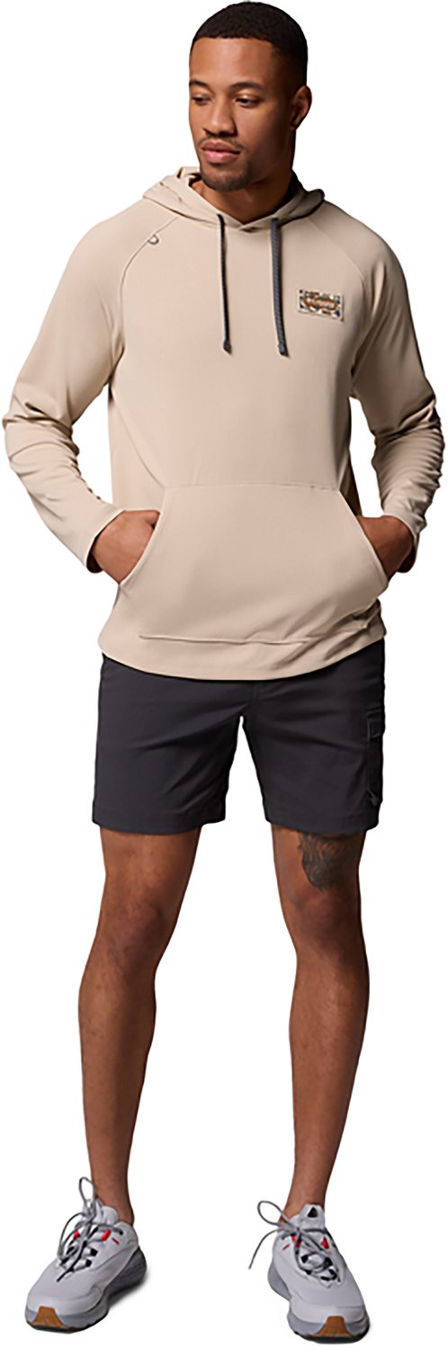 Stay dry whether you're on the boat or hanging by the creek with the Columbia Men's Wild Cast Camp Hoodie. The polyester material provides a comfortable feel, while Omni-Wick technology helps keep you cool and dry. Omni-Shade UPF 40 sun protection shields against UV rays, and the hood and drawstring combo offers adjustable coverage.