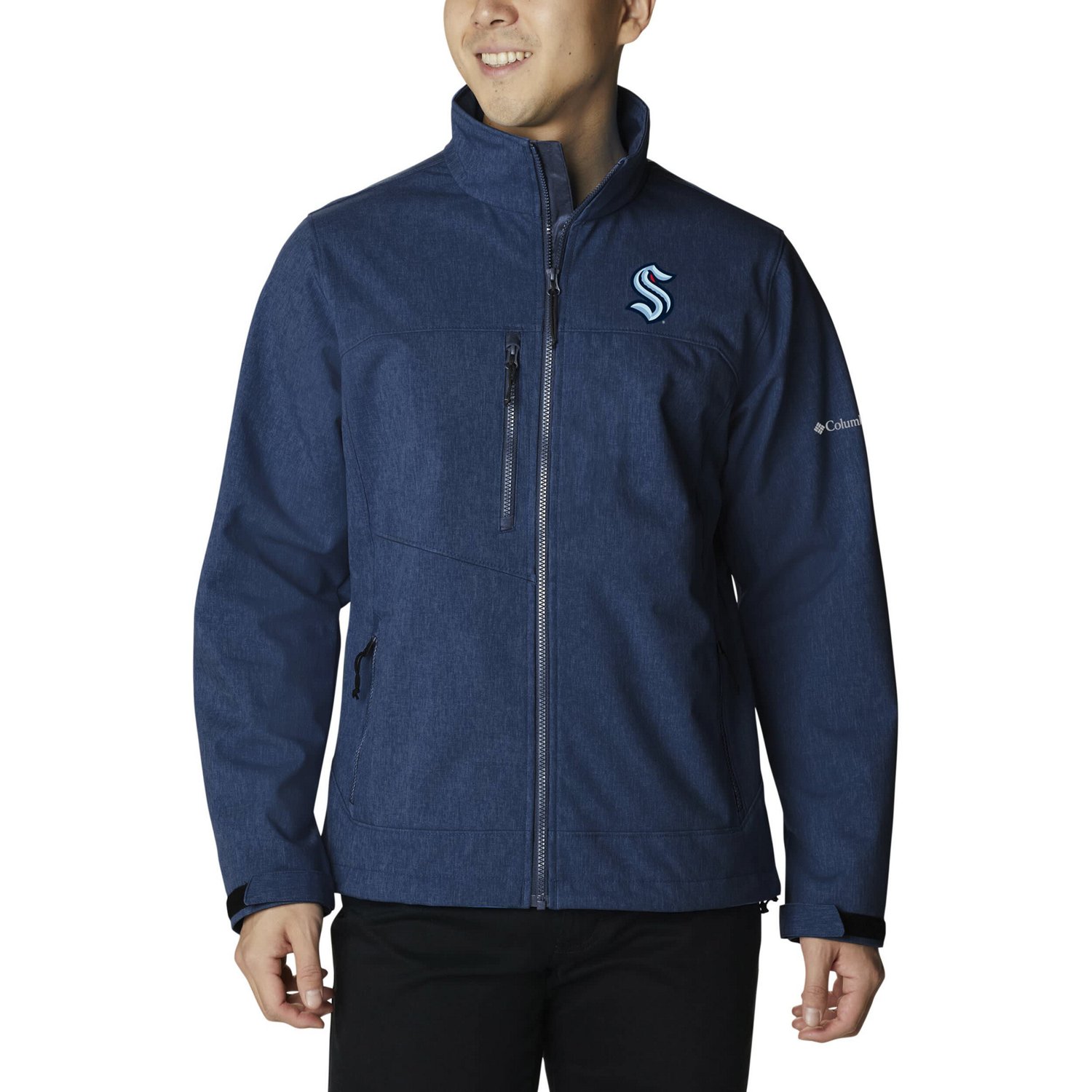 Bundle up for chilly weather in style with this Ascender II Full-Zip Jacket from Columbia This sporty piece is designed to keep you cozy in mild temperatures so you can throw it on for almost any occasion The jacket features a soft fleece inner lining for extra comfort a zippered chest pocket for storage and two side-seam pockets to keep your hands warm Style comfort and utility all while showing the world that you're a true Seattle Kraken diehard
