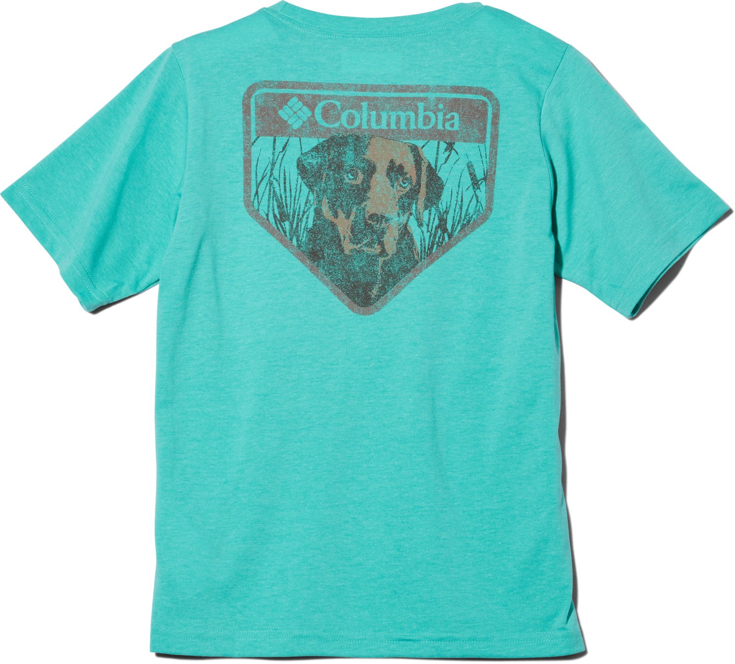 He'll stay and look cool in the Columbia Sportswear Boys' Lab Badge Short Sleeve T-shirt. This lightweight t-shirt is made of a moisture-wicking blend of polyester and cotton to help him stay dry and comfy all day.