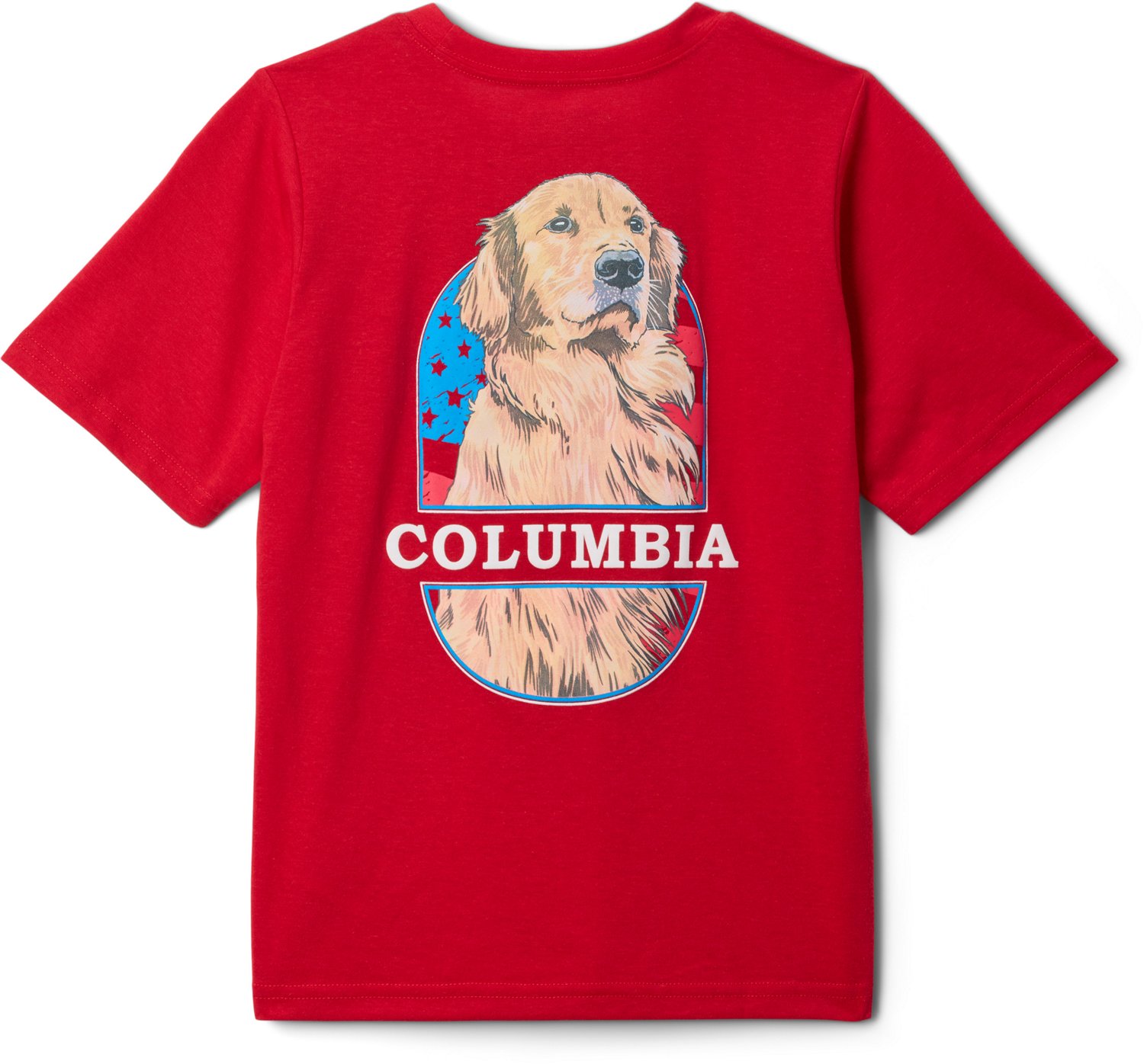Stay dry and active all day with the Columbia Sportswear Boys' Patriotic Pose Short Sleeve Graphic T-shirt. The Omni-Wick draws moisture to the surface for quick drying comfort, and the polyester-cotton blend is soft and easy-wearing.