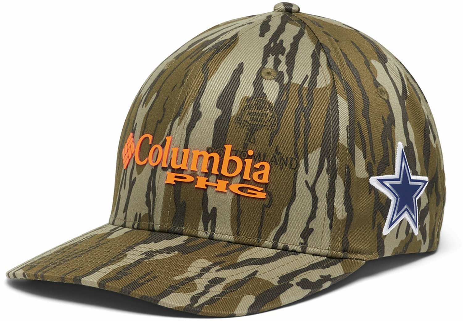Show your Cowboys pride wearing the Columbia Sportswear Dallas Cowboys PHG Camo Ball Cap. This cap has a structured design, flat brim, and stretch fit. The Cowboys star logo on side shows your team spirit, while the camo print adds style.