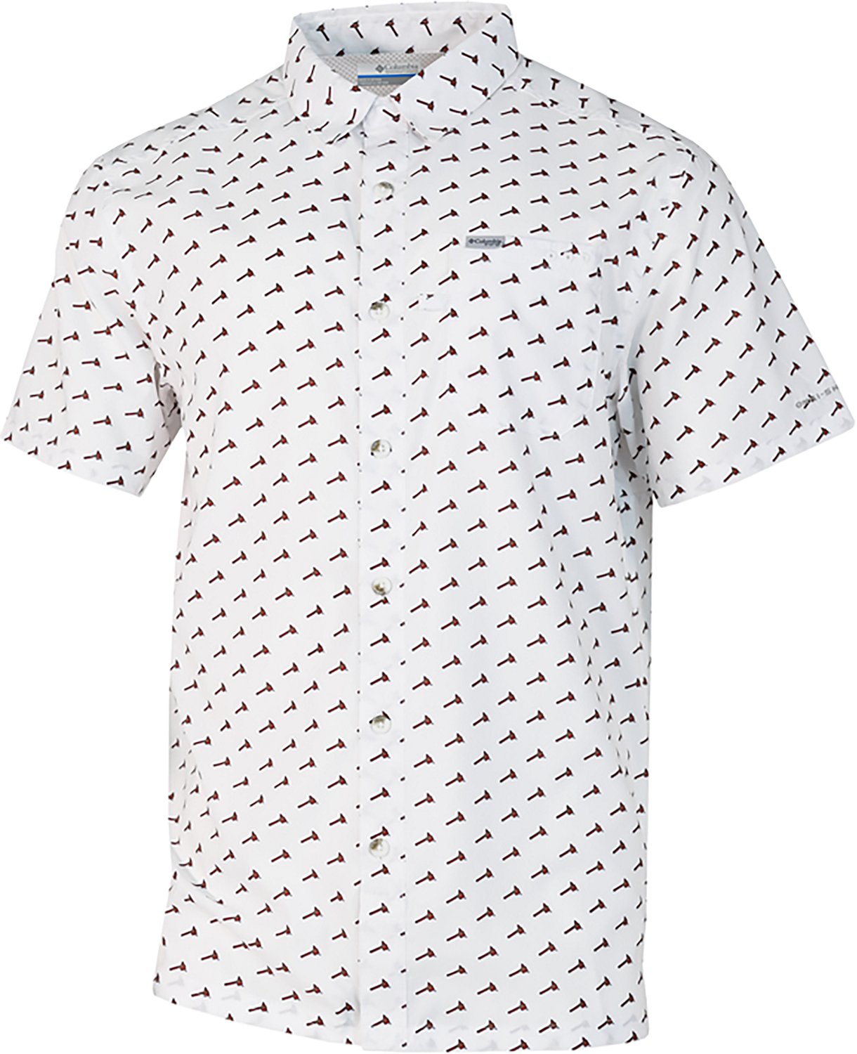 Support your team in style with this Columbia Sportswear Men's Atlanta Braves Micro Logo Super Slack Tide Short Sleeve Shirt. It is made of 100% polyester for durability, and the shirt features Omni-Wick technology to help keep you dry. Designed with micro team logos across the shirt.