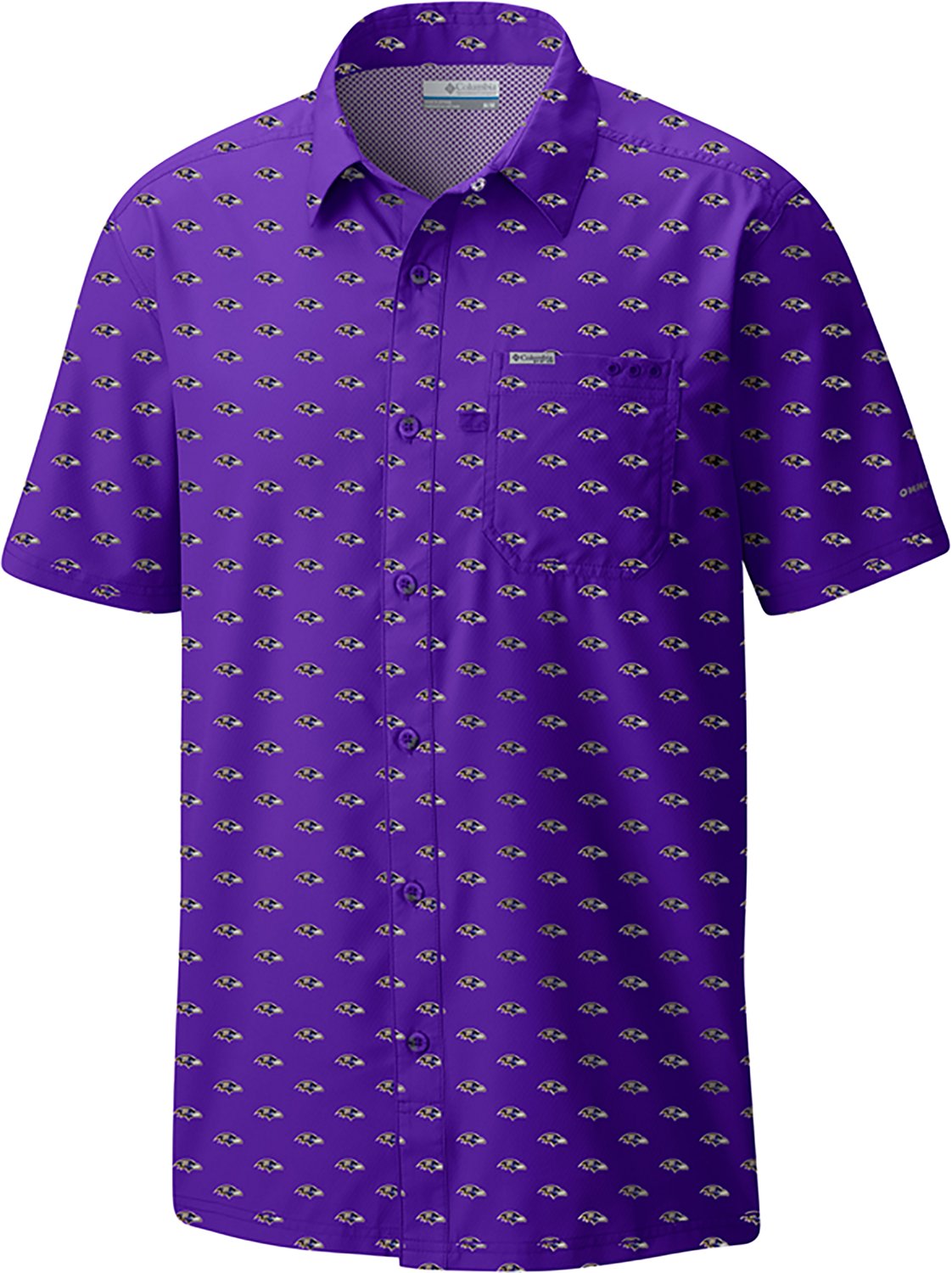 Show your support while staying cool and stylish with the Columbia Sportswear Men's Baltimore Ravens Super Slack Tide Micro Print Short Sleeve Shirt. The Omni-Wick™ fabric draws sweat away from your skin to keep you cool and dry, and the Omni-Shade™ material helps protect from UV rays.