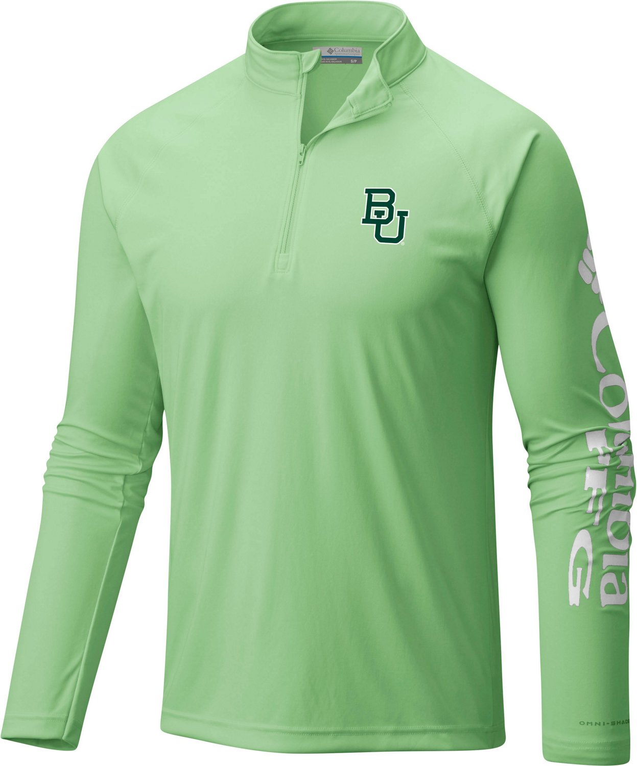 Sport the Columbia Sportswear Men's Baylor University Terminal Tackle 1/4 Zip Sweatshirt to show off your Bears pride. Made of 100% polyester interlock for durability, this shirt comes with Omni-WICK technology to wick sweat away and Omni-SHADE UPF 50 sun protection. The shirt also features a Columbia Sportswear graphic on the sleeve for a touch of style.