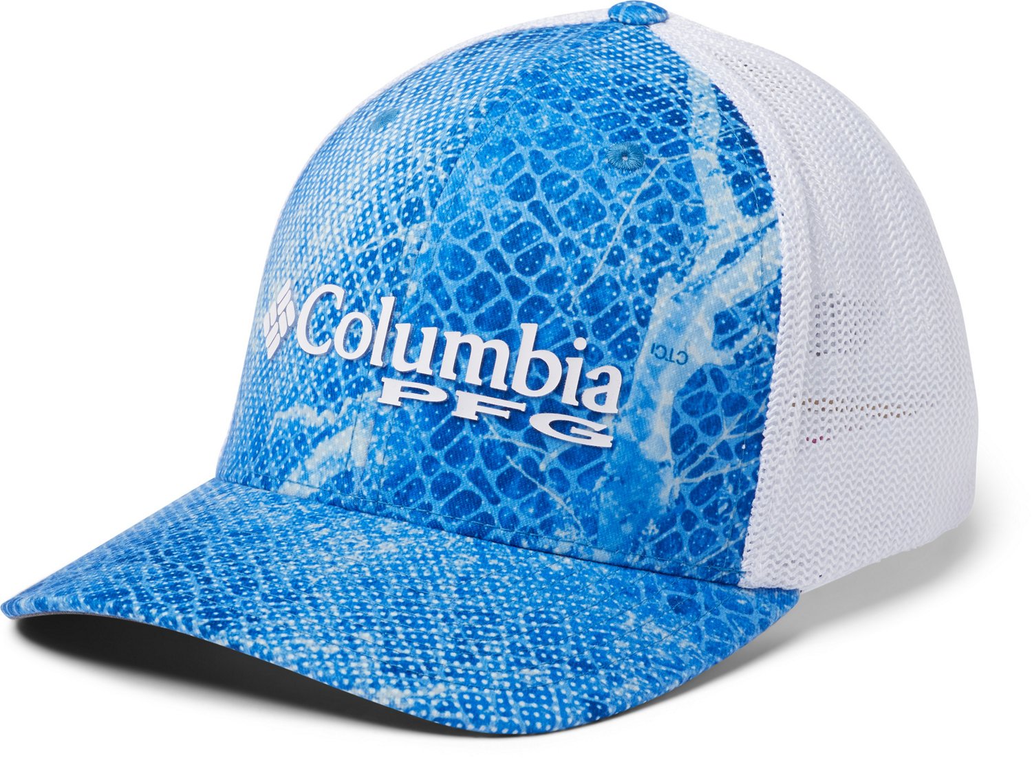 Keep cool as you stay hidden in the Columbia Sportswear Men's Camo Mesh Ball Cap. FlexFit™ technology stretches for a great fit, while the ventilated mesh offers breathability throughout your hunt. The Columbia Sportswear™ logo is displayed over a trendy camo background on the front panel.
