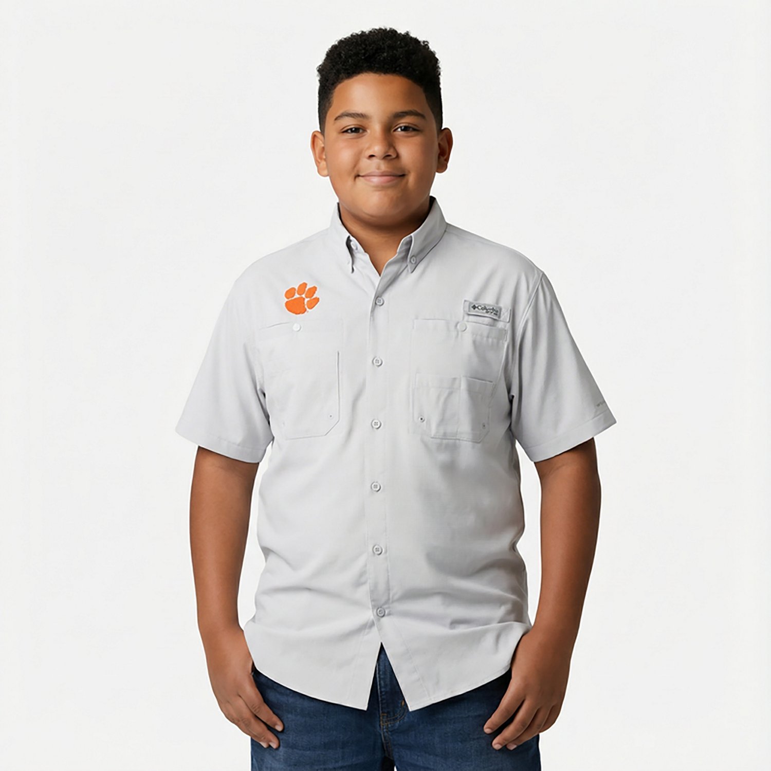 Featuring Omni-Wick™ fabric technology and vented construction, the Columbia Sportswear™ Men's Clemson University Tamiami™ Short Sleeve Fishing Shirt helps keep you dry. This shirt is made of 100% polyester ripstop for comfortable wear and has Omni-Shade™ UPF 40 sun protection against harmful UV rays. Multiple chest pockets. Rod holder. Modern classic fit.