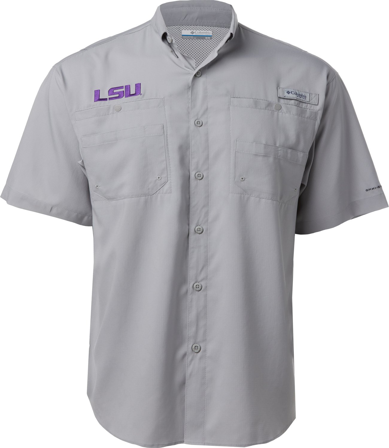 The Columbia Sportswear Men's Collegiate Omni-Dry Tamiami Shirt helps keep you dry and comfortable with Omni-Dry® advanced evaporation fabric and Omni-Shade® UPF 40 sun protection. Rod holder. Short sleeves. Polyester.