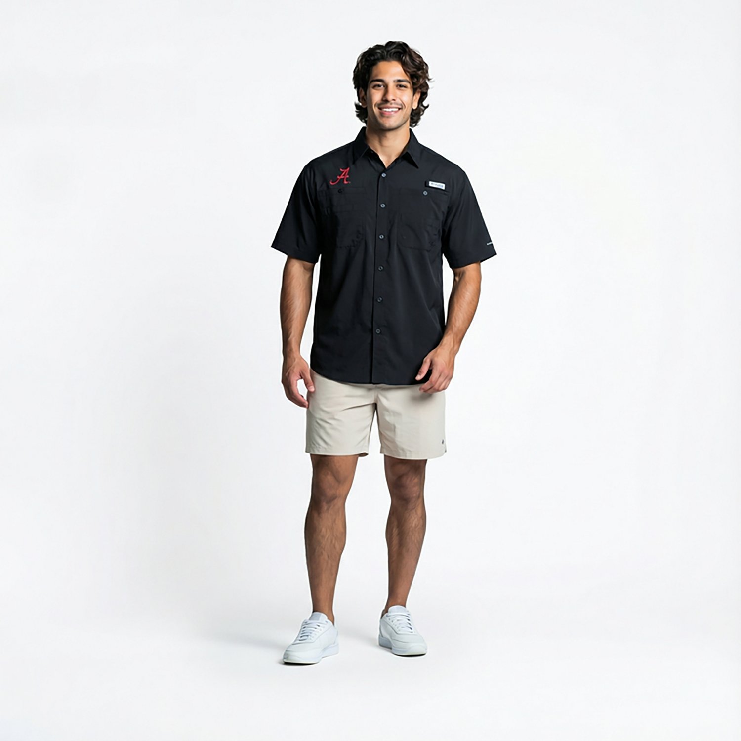The Columbia Sportswear™ Men's Collegiate Tamiami™ Shirt helps keep you dry and comfortable with Omni-Dry® advanced evaporation fabric and Omni-Shade® UPF 40 sun protection. Rod holder. Short sleeves. Polyester.