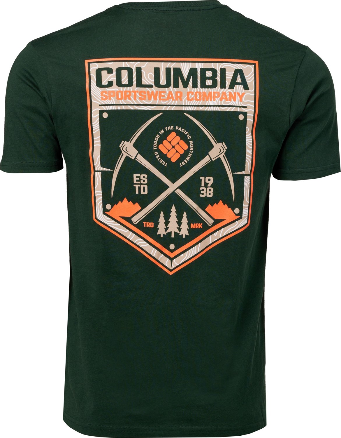 Put your love for the outdoors on display when you wear the Columbia Sportswear Men's CSC Picked T-shirt. The 100% cotton construction helps keep you comfortable throughout the day, and the CSC graphic on the back and a Columbia logo on the front add a touch of style.