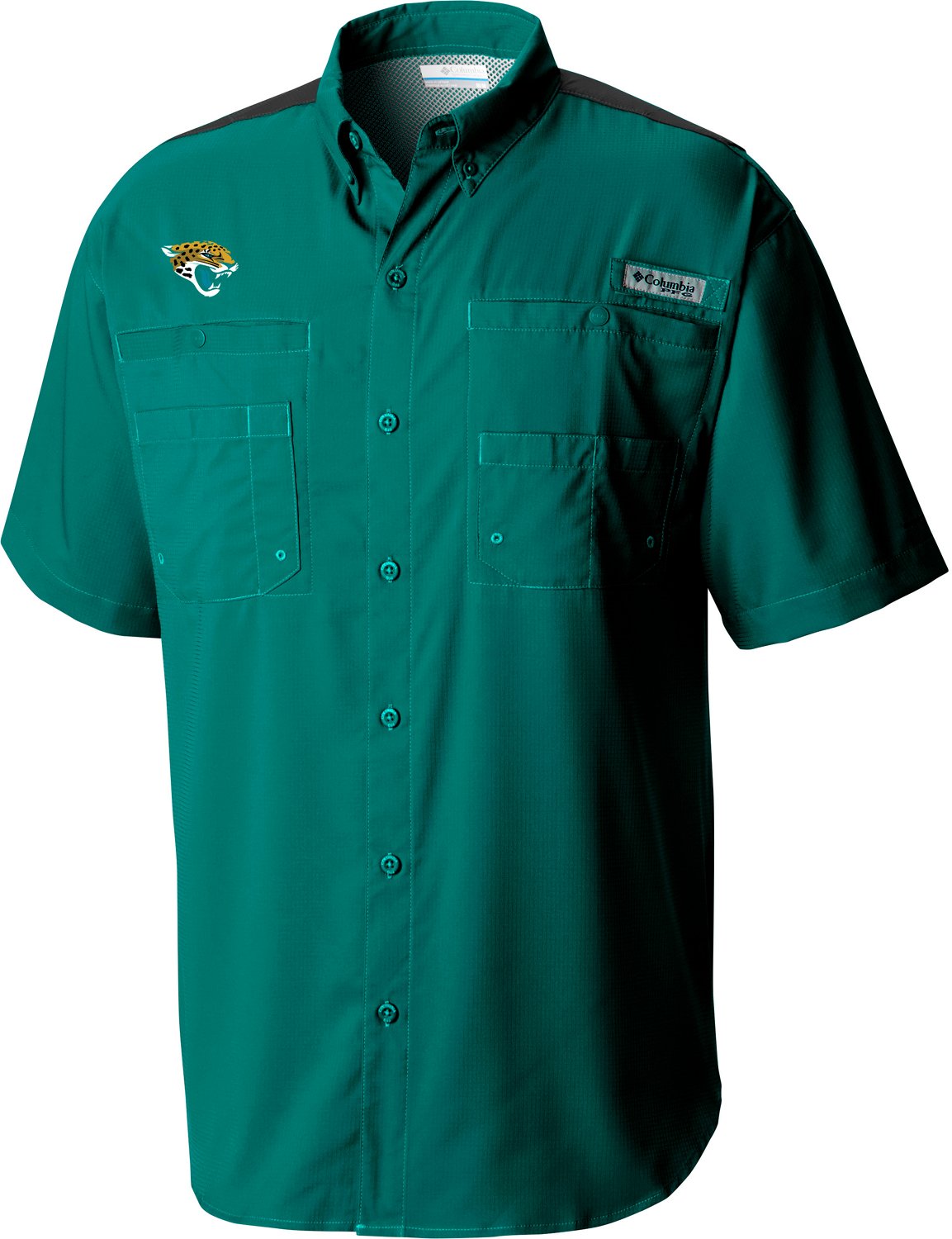Show off your fan pride while wearing the Columbia Sportswear Men's Jacksonville Jaguars Colorblock Tamiami Shirt. The 100% polyester construction is built to last, while Omni-Wick technology provides quick-drying performance. The Omni-Shade technology offers sun protection, and the team graphic makes your fandom clear for all to see.