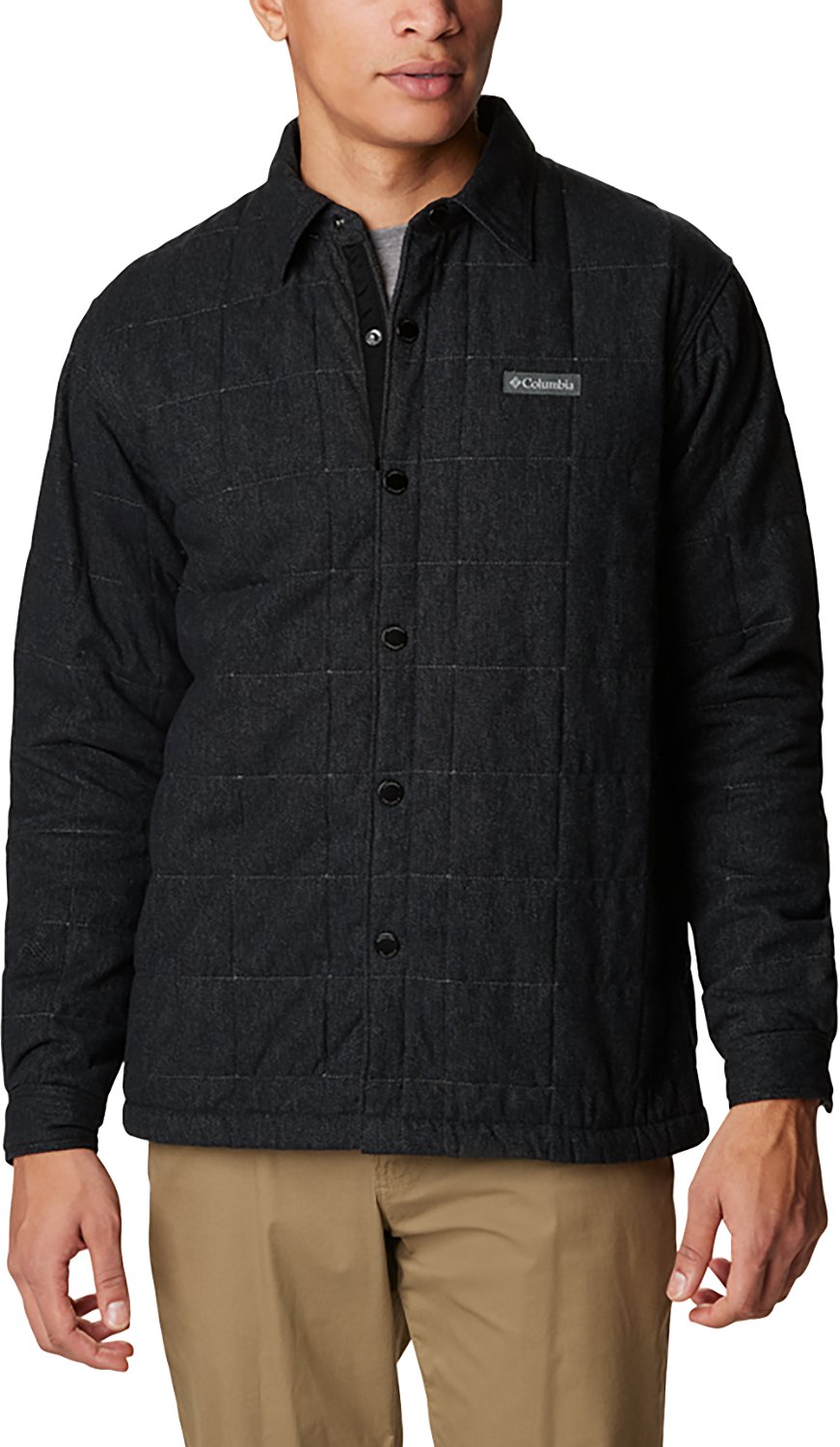 Beat the chill with the Columbia Sportswear Men's Landroamer Quilted Shirt Jacket. The cotton material provides a comfortable feel, while the snap-front closure helps retain warmth. A loop on the back collar allows for easy hanging.