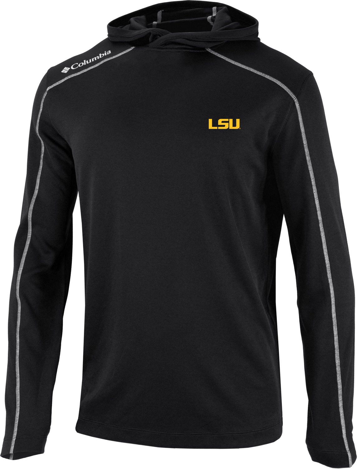 Stay warm tailgating before the Tigers game in the Columbia Sportswear Men's Louisiana State University Club Shotgun Hoodie. The Omni-Wick technology keeps you cool and dry, and the 100% polyester construction promotes durability and softness. A team design highlights your fandom, and the Omni-Shade technology keeps your skin safe in the sun.
