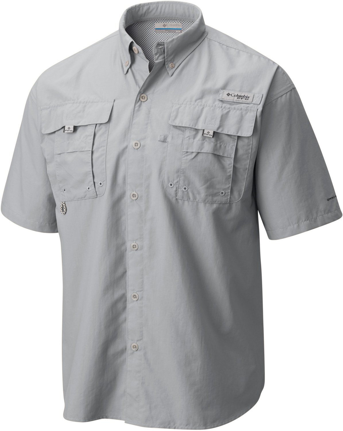 An angler requires efficient, functional clothing, but with just the right hint of style to create a versatile wardrobe. The Columbia Sportswear Men's Performance Fishing Gear Bahamas II Big & Tall Short Sleeve Shirt is made with quick-drying, lightweight nylon fabric to keep you comfortable. The short-sleeve, button-up design can be worn out on the lake or on a casual Friday at work. Mesh venting on the shoulders helps cool you down in the sun, and Omni-Shadeâ„¢ tech has a UPF rating of 30.