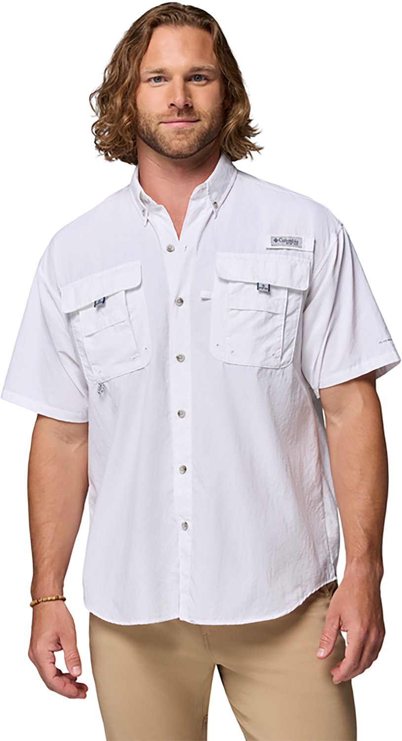 The Columbia Sportswear Men's PFG Bahama II Short Sleeve Shirt features mesh-lined cape vents at the back shoulder to enhance airflow and keep you cool and dry. The nylon Backcountryâ„¢ cloth dries fast, and the UPF 30 rating protects from the sun's harmful UV rays. 2 big chest pockets. Short sleeves.