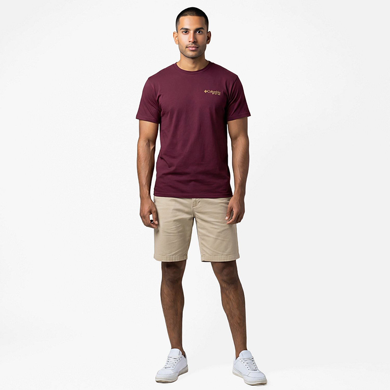 Look and feel relaxed when you wear the Columbia Sportswear Men's PFG Bait n BBQ Graphic T-shirt. The cotton material provides a comfortable feel, while the graphic design delivers a stylish touch.