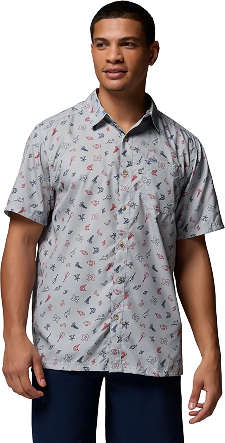 The Columbia Sportswear Men's PFG Super Slack Tide Camp Shirt keeps you cool and comfortable with Omni-Wickâ„¢ fabric technology to wick away moisture. Omni-Shadeâ„¢ fabric technology helps protect your skin with UPF 50+ sun protection. Button-down. Short sleeves.