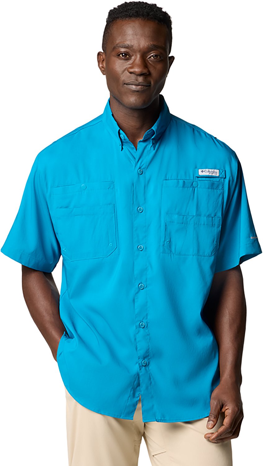 The Columbia Sportswear Men's PFG Tamiami II Short Sleeve Shirt features deep chest pockets and a rod holder and is made of 100% polyester with mechanical stretch construction to accommodate a large range of motion when casting. Omni-Shadeâ„¢ and Omni-Dryâ„¢ technologies provide sun protection and dry wear, and mesh-lined cape vents offer breathability. Antimicrobial performance. Short sleeves.