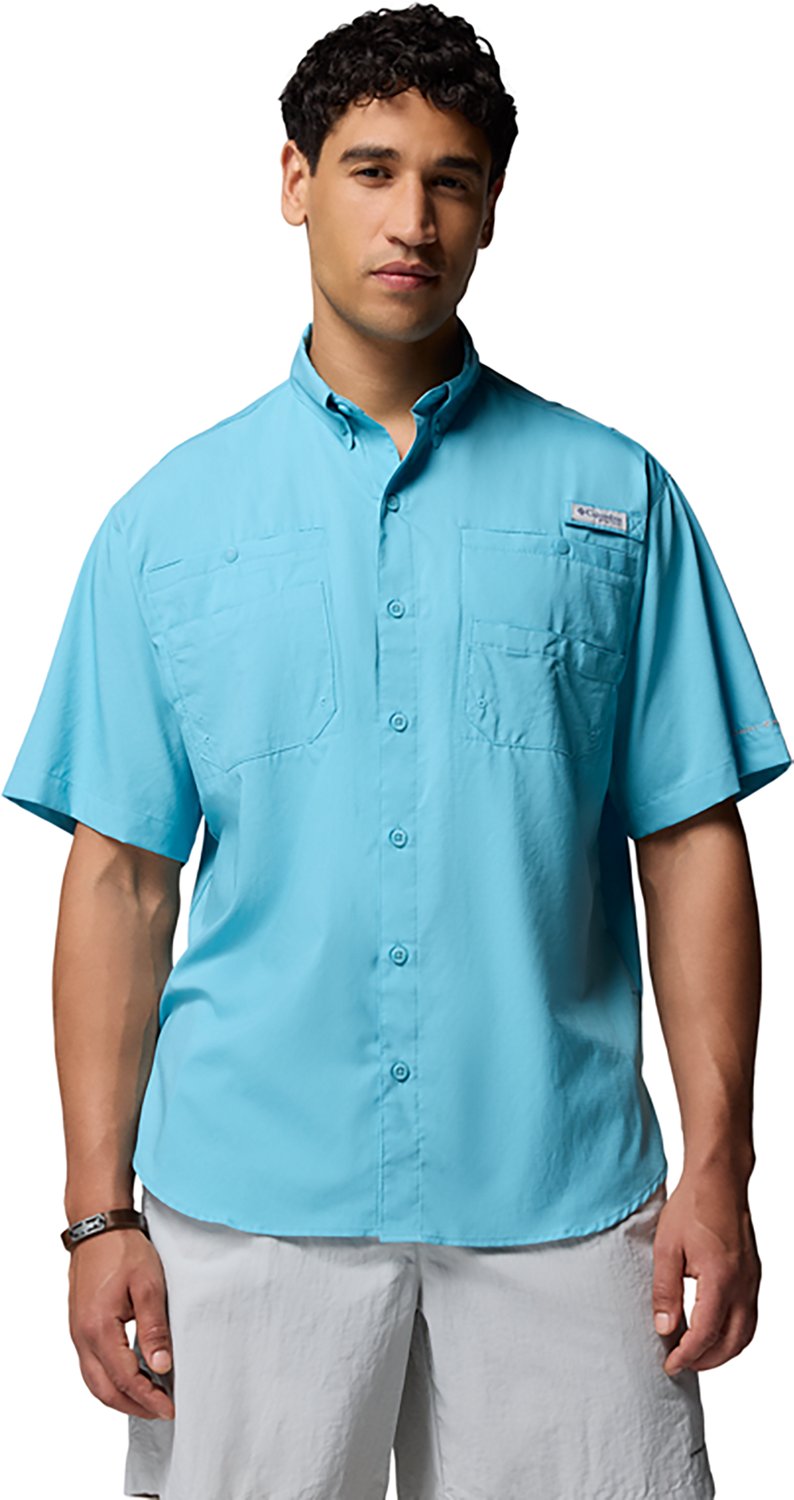 The Columbia Sportswear Men's PFG Tamiami II Short Sleeve Shirt features deep chest pockets and a rod holder and is made of 100% polyester with mechanical stretch construction to accommodate a large range of motion when casting. Omni-Shadeâ„¢ and Omni-Dryâ„¢ technologies provide sun protection and dry wear, and mesh-lined cape vents offer breathability. Antimicrobial performance. Short sleeves.