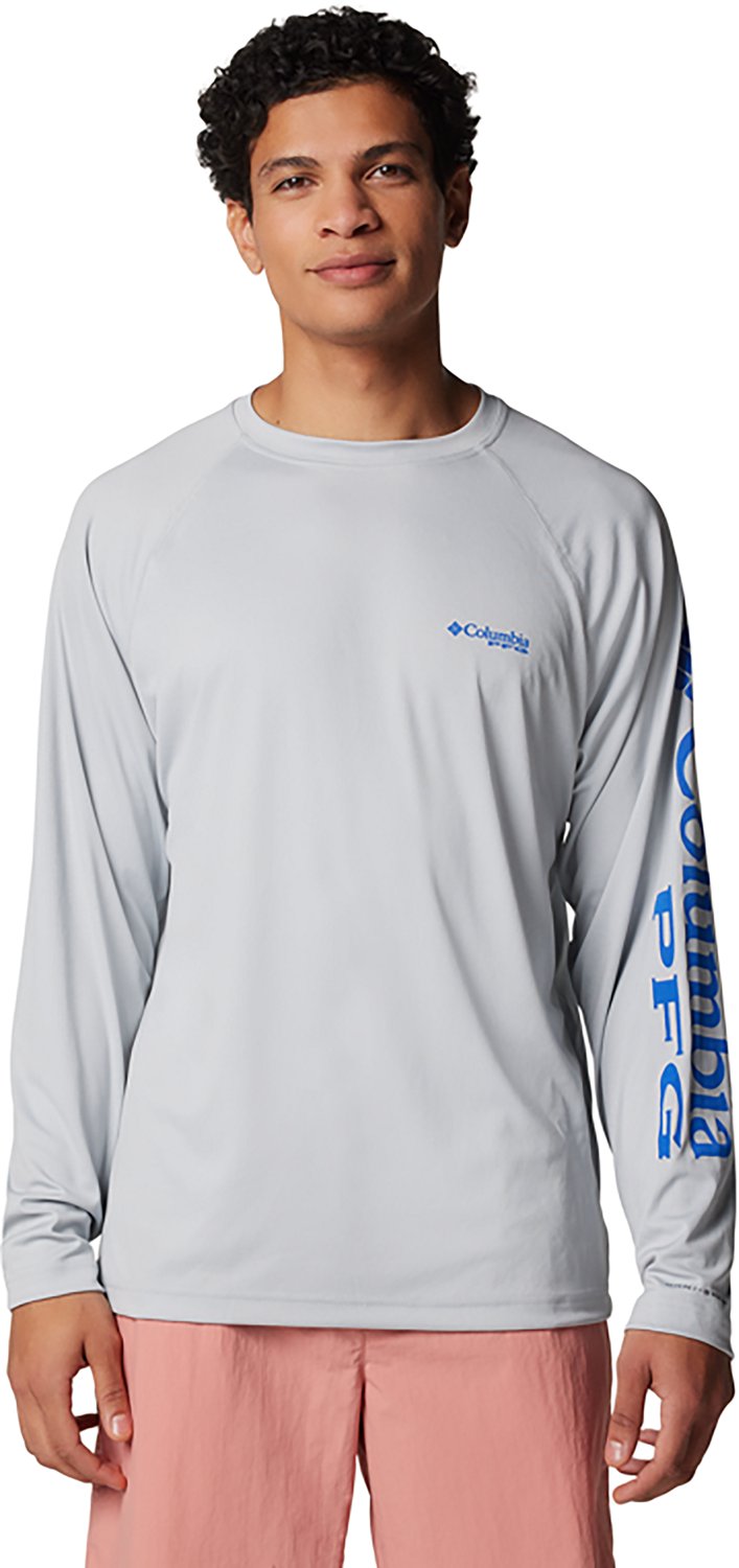 Show your love of fishing while wearing the Columbia Sportswear Men's PFG Terminal Tackle Long Sleeve Shirt. Made of 100% polyester, this T-shirt features Omni-Wickâ„¢ fabric technology to help keep you dry and comfortable, while Omni-Shadeâ„¢ fabric technology provides UPF 50 sun protection against harmful UV rays. Crew neck. Columbia PFG wordmark at the left chest and down the left sleeve. Modern Classic fit.