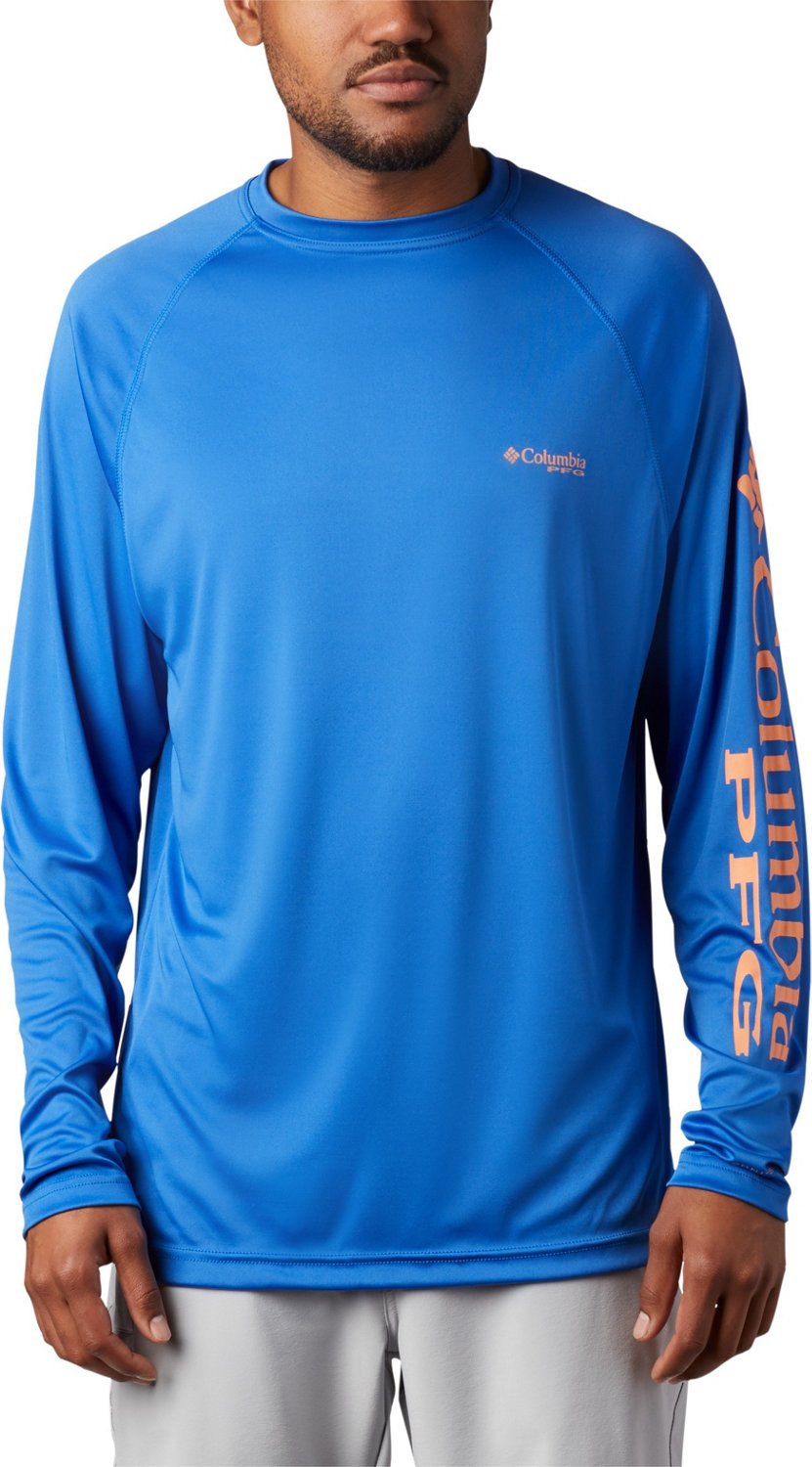Show your love of fishing while wearing the Columbia Sportswear Men's PFG Terminal Tackle Long Sleeve Shirt. Made of 100% polyester, this T-shirt features Omni-Wickâ„¢ fabric technology to help keep you dry and comfortable, while Omni-Shadeâ„¢ fabric technology provides UPF 50 sun protection against harmful UV rays. Crew neck. Columbia PFG wordmark at the left chest and down the left sleeve. Modern Classic fit.