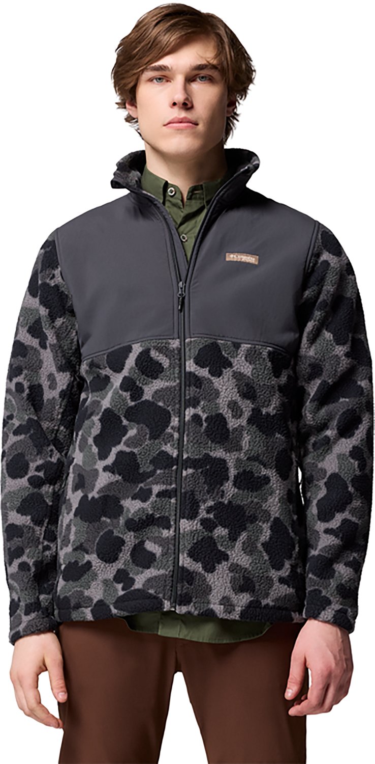 Put on the Columbia Sportswear Men's PHG Sherpa Jacket and head out to take on the day, even in tough conditions. This sherpa jacket is made of nylon and polyester for softness, and the wind-resistant design and chin guard help keep you warm when the weather doesn't cooperate. Hand pockets let you store items.