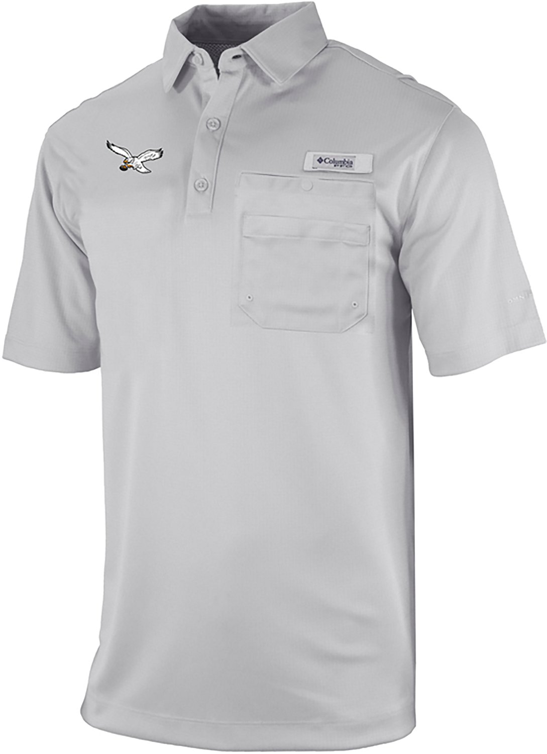 Upgrade your sports clothing collection with the Columbia Sportswear Men's Philadelphia Eagles Flycaster Pocket Polo Shirt. The Omni-Shade UPF30 rating can give you peace of mind while wearing the shirt outside, and the material is built to limit water and sweat impacts. The polyester fabric is designed for regular use, and the short sleeves help give you an easygoing wearing experience.